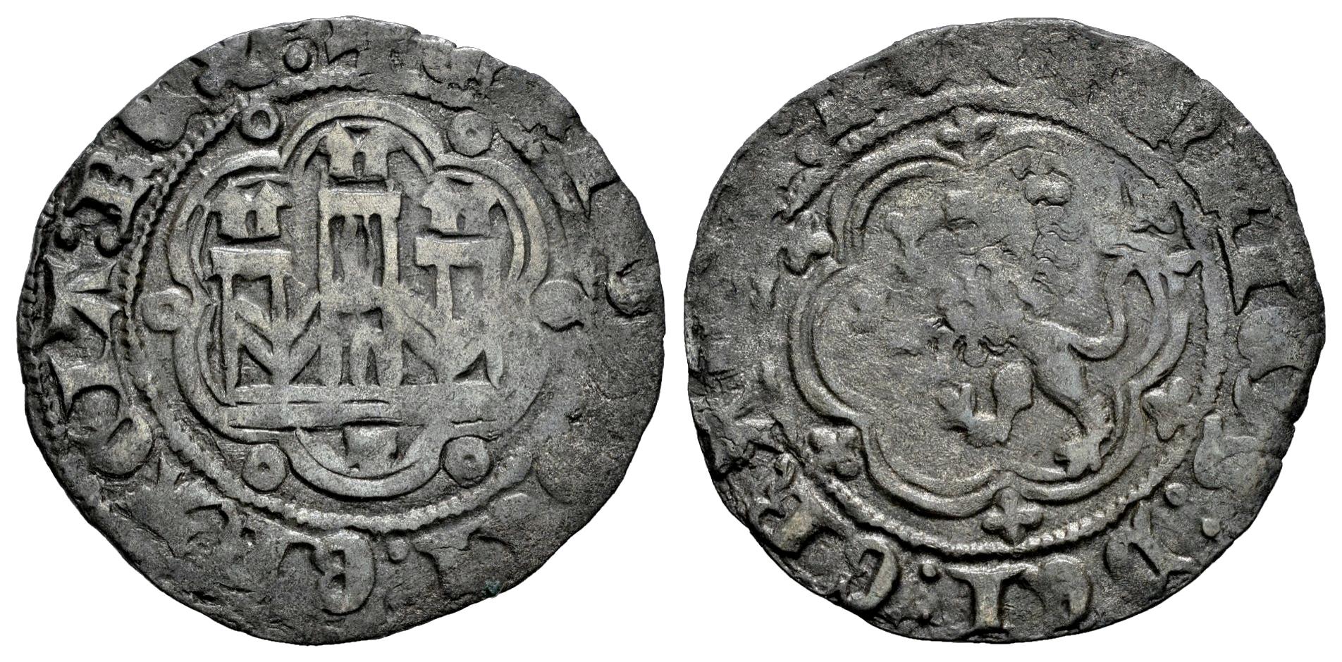 Kingdom of Castille and Leon. Enrique III (1390-1406). Blanca. Toledo. (Bautista-770 var.). Anv.: + ENRI(CU)S : DEI : GRACIA : REX : . Rev.: + ENRI(CU)S : DEI : GRACIA : REX. Bi. 1,95 g. T below the castle. Lobed with roundels on obverse and blades on reverse. Almost VF. Est...25,00.