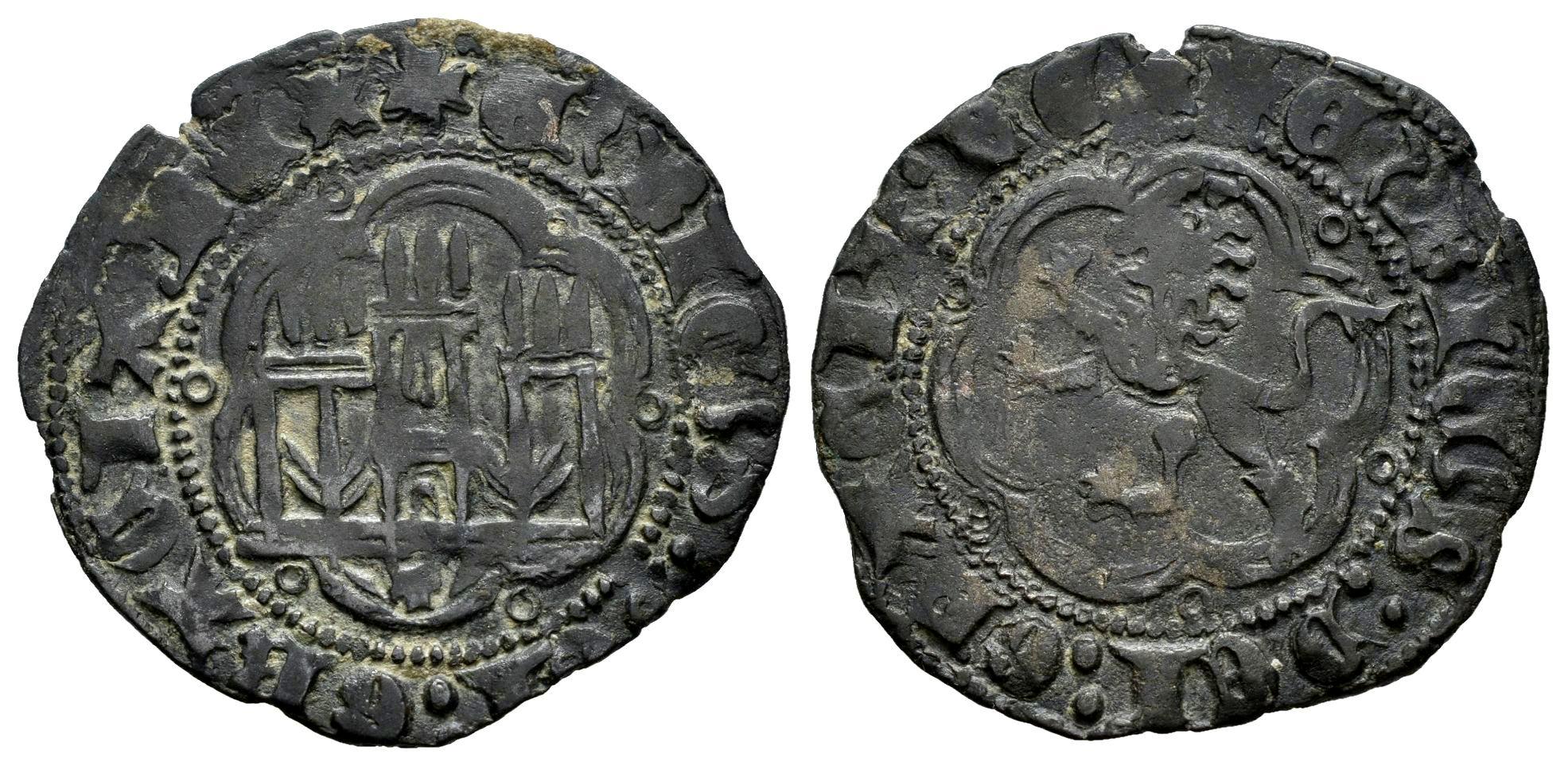 Kingdom of Castille and Leon. Enrique III (1390-1406). Blanca. Toledo. (Bautista-770 var.). Anv.: + ENRI(CU)S : DEI : GRACIA : REX. Rev.: + ENRI(CU)S : DEI : GRACIA : REX. Bi. 2,05 g. T below the castle. Roundels at the intersections of the lobed. Rare. VF. Est...20,00.