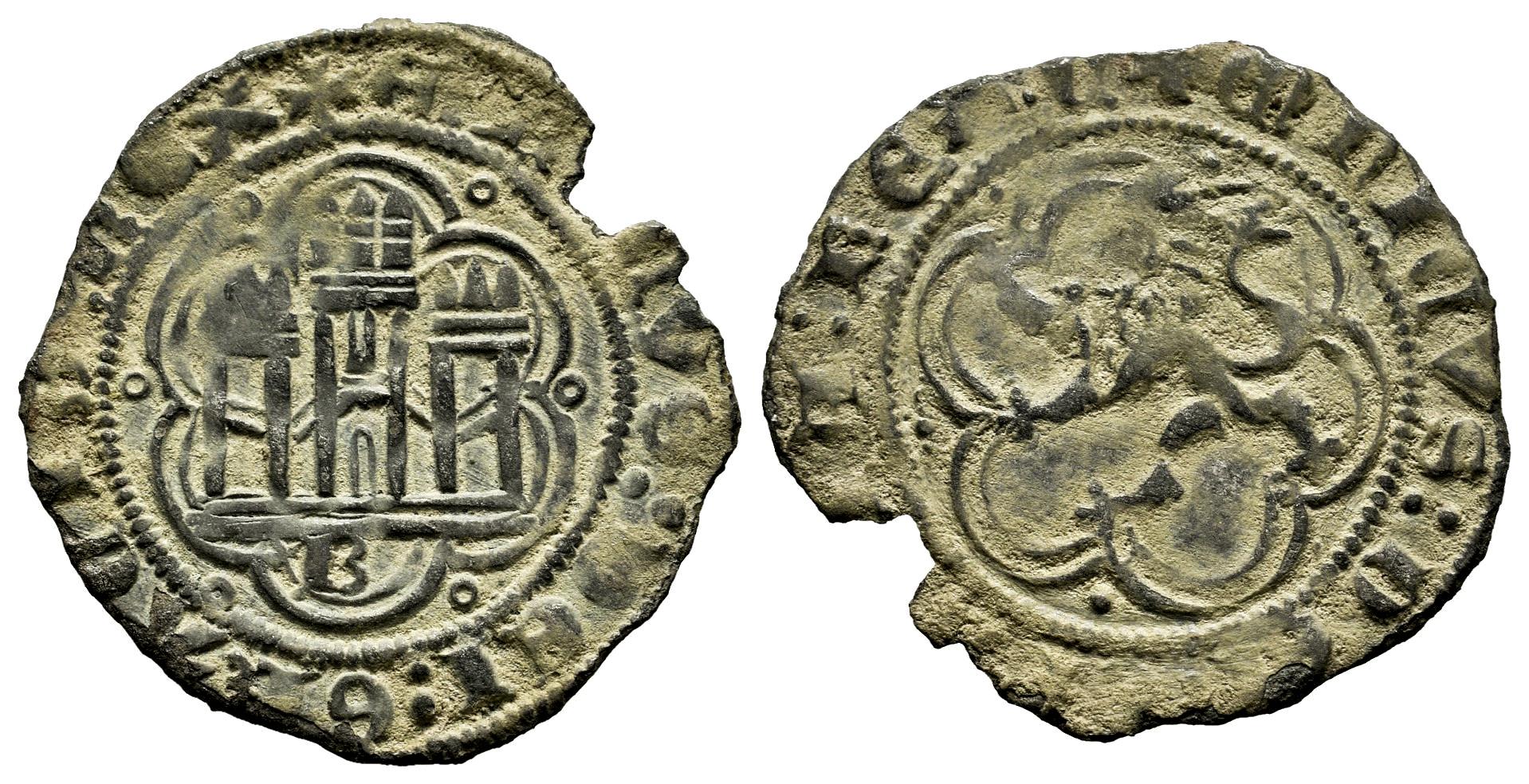 Kingdom of Castille and Leon. Enrique III (1390-1406). Blanca. Burgos. (Bautista-771). Bi. 1,30 g. S below the castle. Light planchet break. Choice VF/VF. Est...25,00.