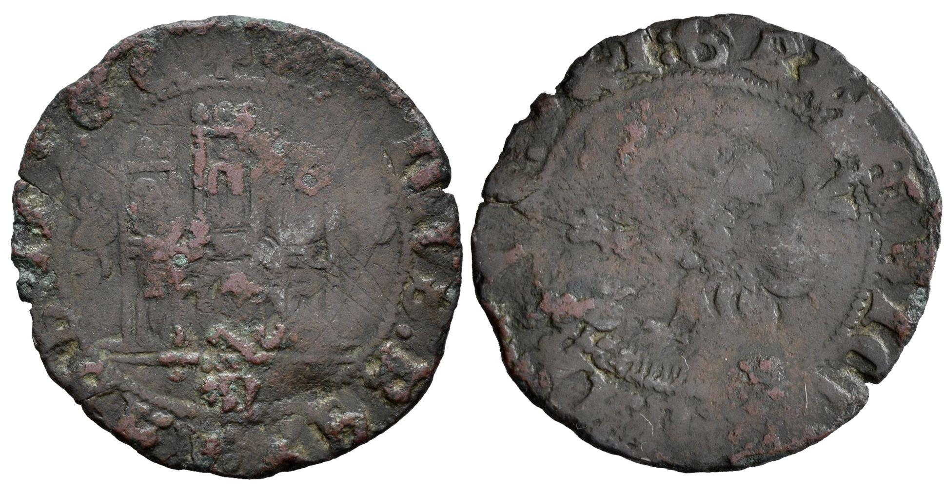 Kingdom of Castille and Leon. Enrique IV (1454-1474). 1 maravedi. Madrid. (Bautista-967 var.). Anv.: + ENRICVS : REX : CASTELLE. Rev.: + ENRICVS : CARTVS : DEI : GRA. Bi. 2,41 g. Crowned M below the castle. Pomegranate on the sides of the castle. Rare. F. Est...60,00.