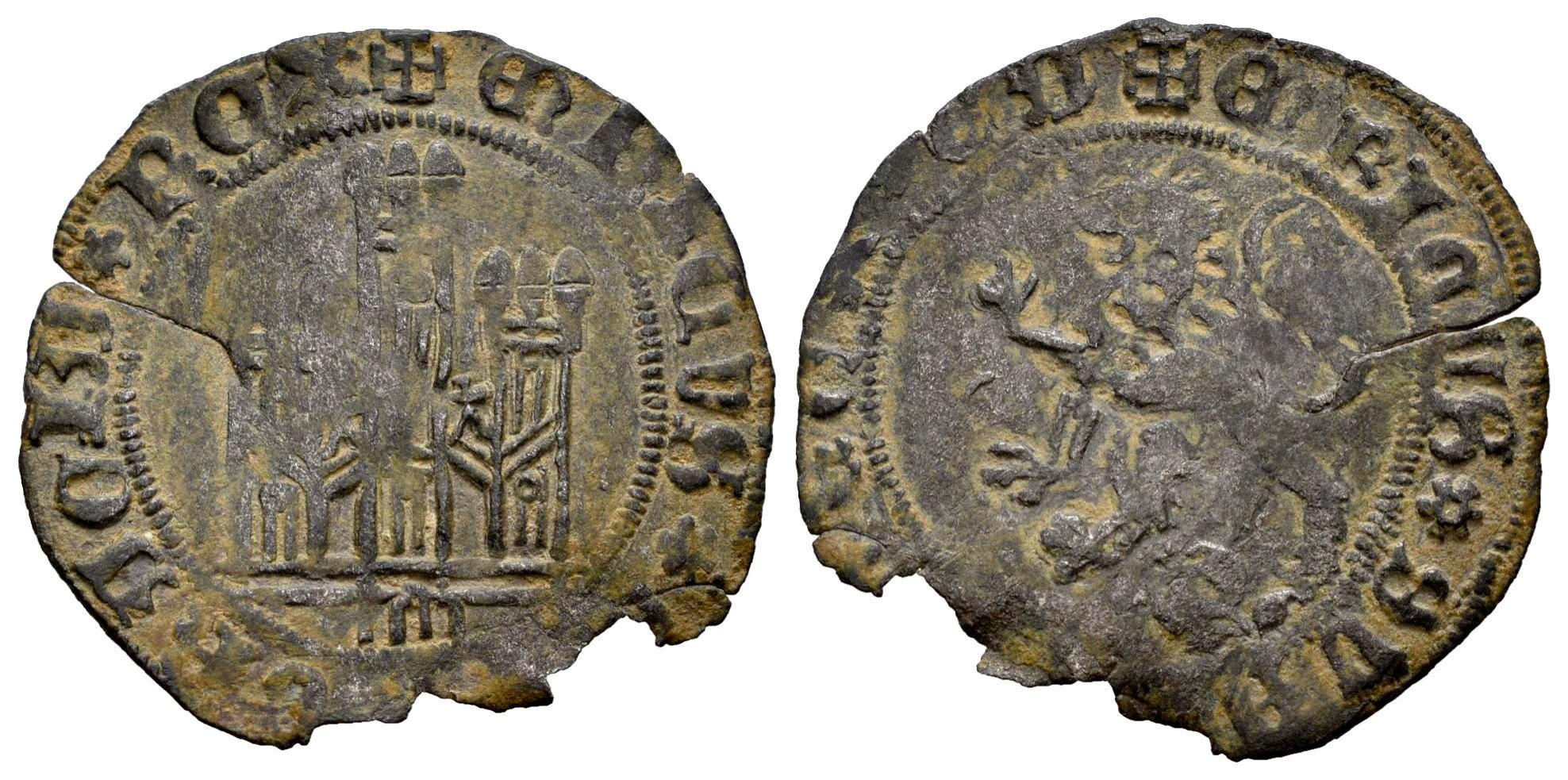 Kingdom of Castille and Leon. Enrique IV (1454-1474). 1 maravedi. Segovia. (Bautista-973.1). Anv.: + ENRICVS ✿ (DEI ✿) GRACIA ✿ REX. Rev.: + ENRICVS ✿ ⅁VA(RTVS ✿) REX ✿ CA. Bi. 1,42 g. Aqueduct below the castle. Planchet break. Planchet crack. Scarce. VF. Est...70,00.