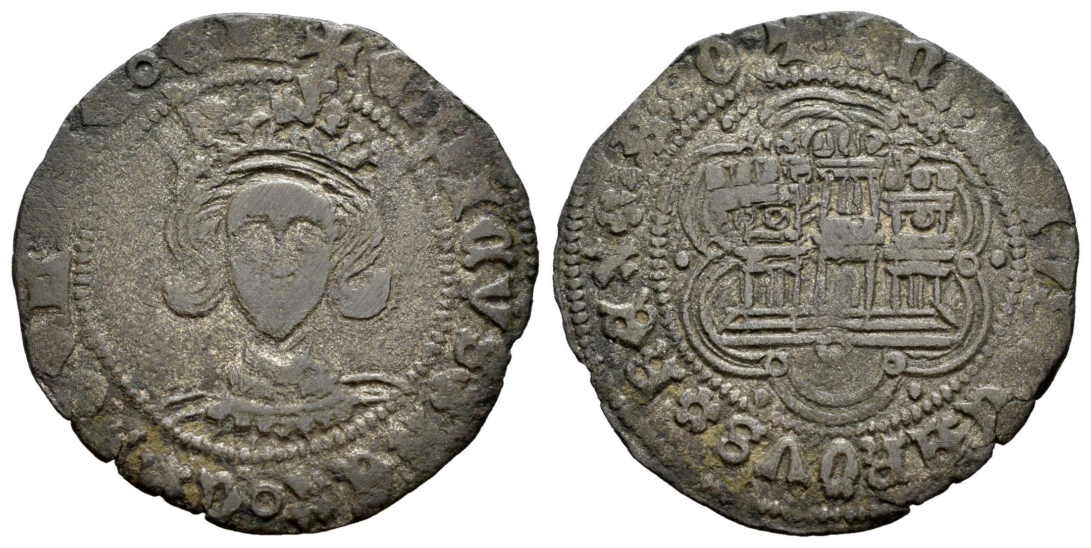 Kingdom of Castille and Leon. Enrique IV (1454-1474). Cuartillo. Sevilla. (Bautista-1023 var.). Anv.: + ENRICVS ✿ REX ◦ CASTELLE ◦ EL. Rev.: + ENRICVS ✿ CARTVS ✿ REX ✿ CAST ◦ . Bi. 2,68 g. S below the castle. Scarce. VF. Est...75,00.