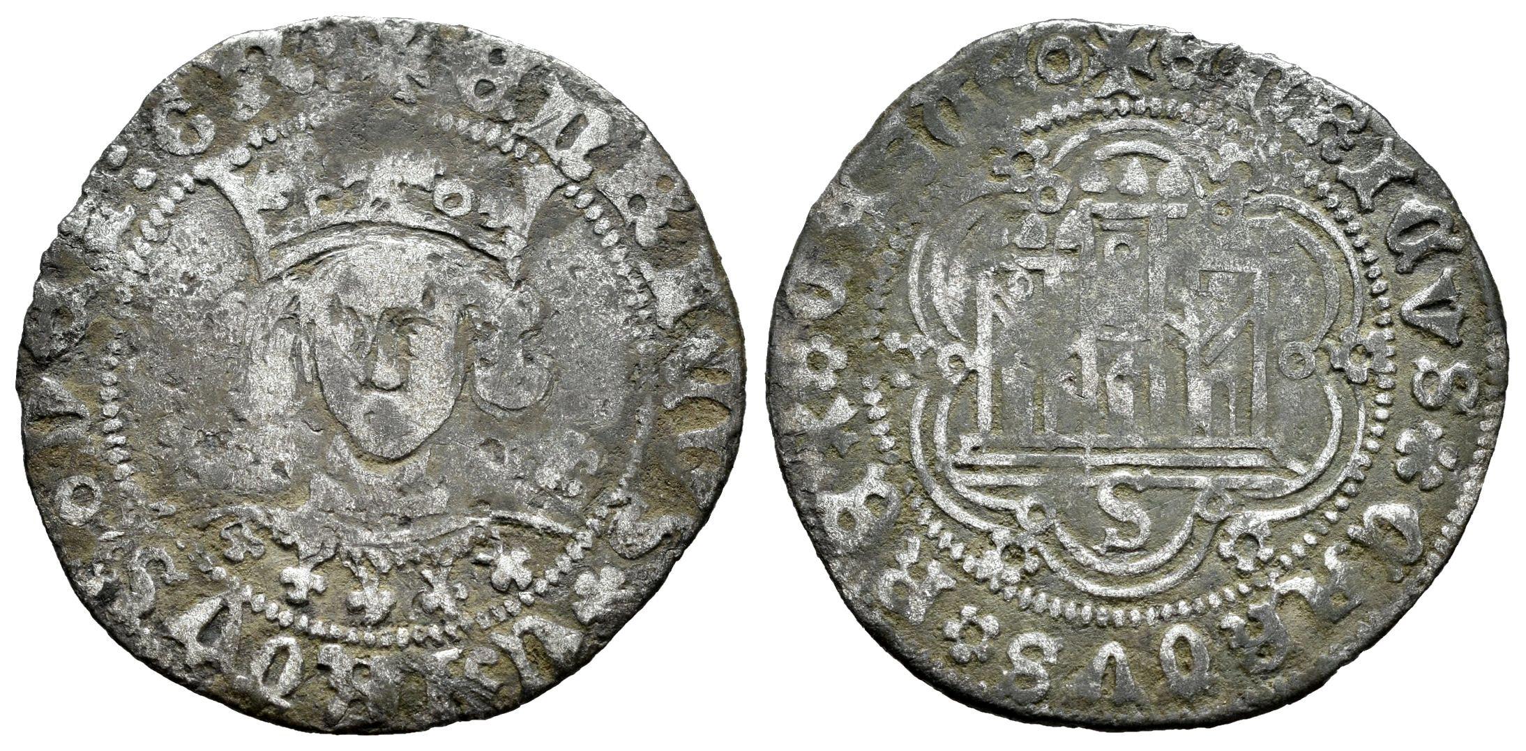 Kingdom of Castille and Leon. Enrique IV (1454-1474). Cuartillo. Sevilla. (Bautista-1023.7 var.). Anv.: + ENRICVS ✿ CARTVS o DEI : GR : . Rev.: + ENRICVS ✿ CARTVS ✿ REX ✿ CASTE o . Bi. 2,66 g. S below the castle. Flower on each side of the bust. Flowers at the intersections of the lobed. Almost VF. Est...50,00.