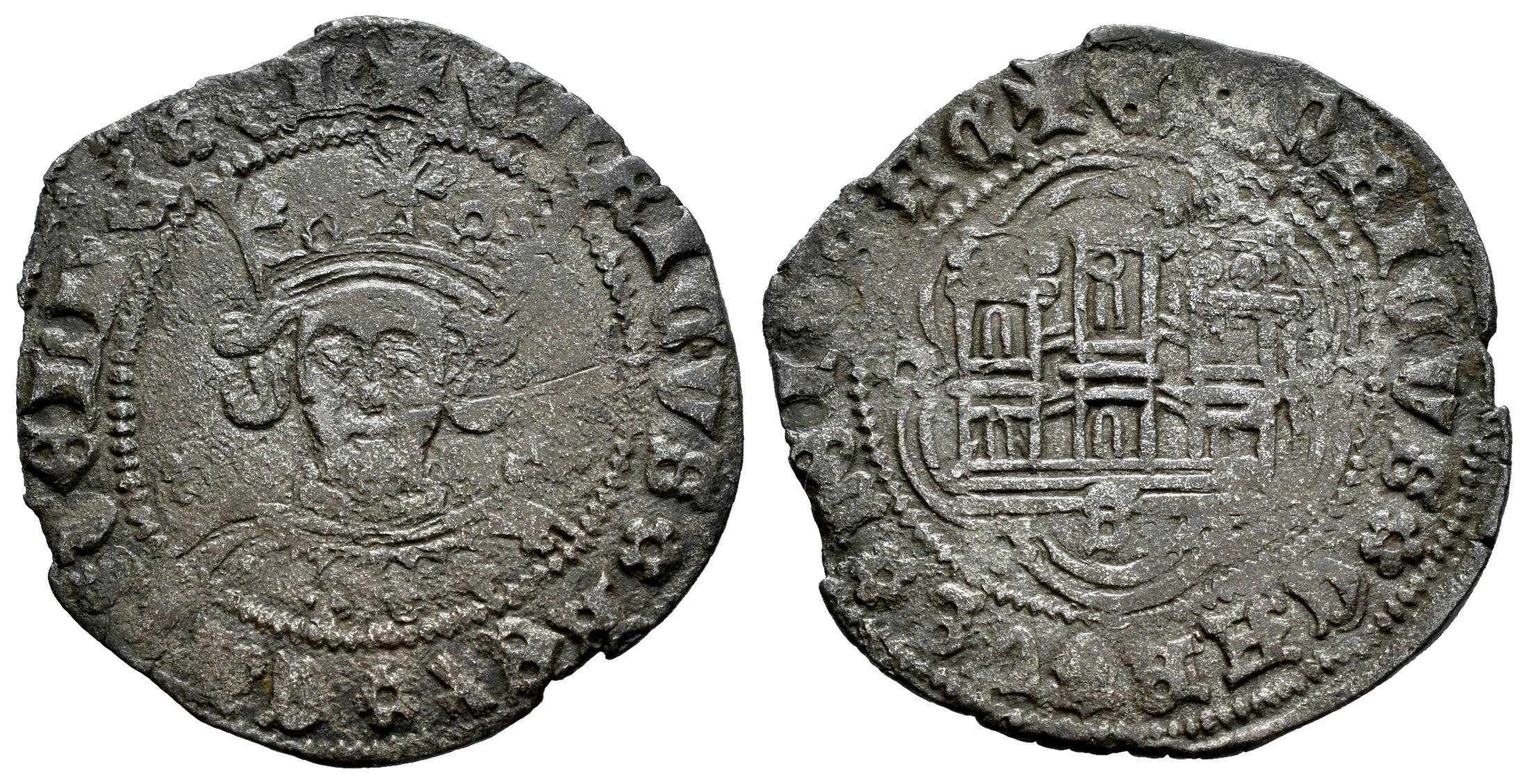 Kingdom of Castille and Leon. Enrique IV (1454-1474). Cuartillo. Sevilla. (Bautista-1023.7 var.). Anv.: + ENRICVS ✿ REX ✿ CASTELLE ✿ EL. Rev.: + ENRICVS ✿ CARTVS ✿ DEI ✿ SAC. Bi. 3,10 g. S below the castle. Flower on each side of the bust. Flowers at the intersections of the lobed. Rare legend. VF/Almost VF. Est...90,00.