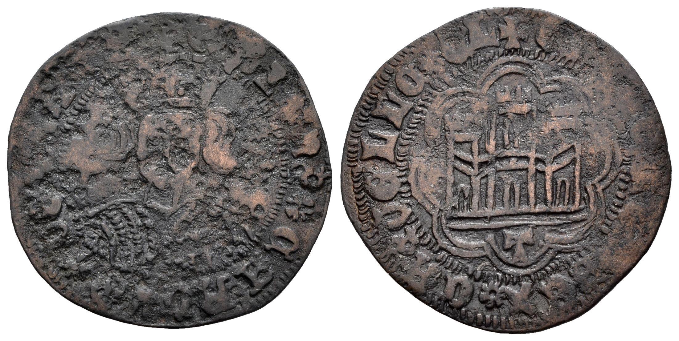 Kingdom of Castille and Leon. Enrique IV (1454-1474). Cuartillo. Toledo. (Bautista-1025.2 var.). Anv.: + ENRICVƧ ✱ CARTVƧ ✱ DEI ... . Rev.: + E ... REX ✱ CAƧTELLE ✱ EL. Bi. 2,67 g. T below the castle. With floral ornaments on both sides of the bust. Contemporary counterfeit. Choice F/Almost VF. Est...60,00.