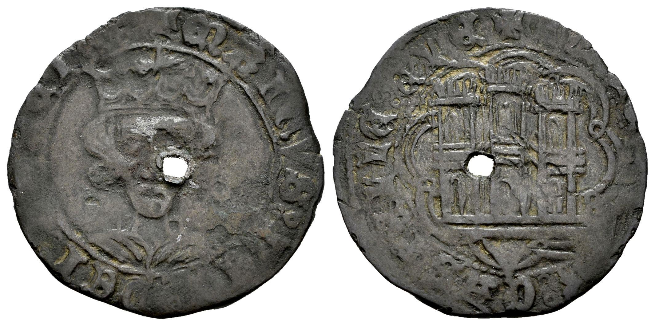 Kingdom of Castille and Leon. Enrique IV (1454-1474). Cuartillo. Villalón. (Bautista-1028 var.). Anv.: + ENRICVS : REX : DEI ... CI .... Rev.: + ... X : CASTELLE : ELE. Bi. 2,95 g. "V" below the castle. Puncture. Rare legend. Choice F/Almost VF. Est...60,00.