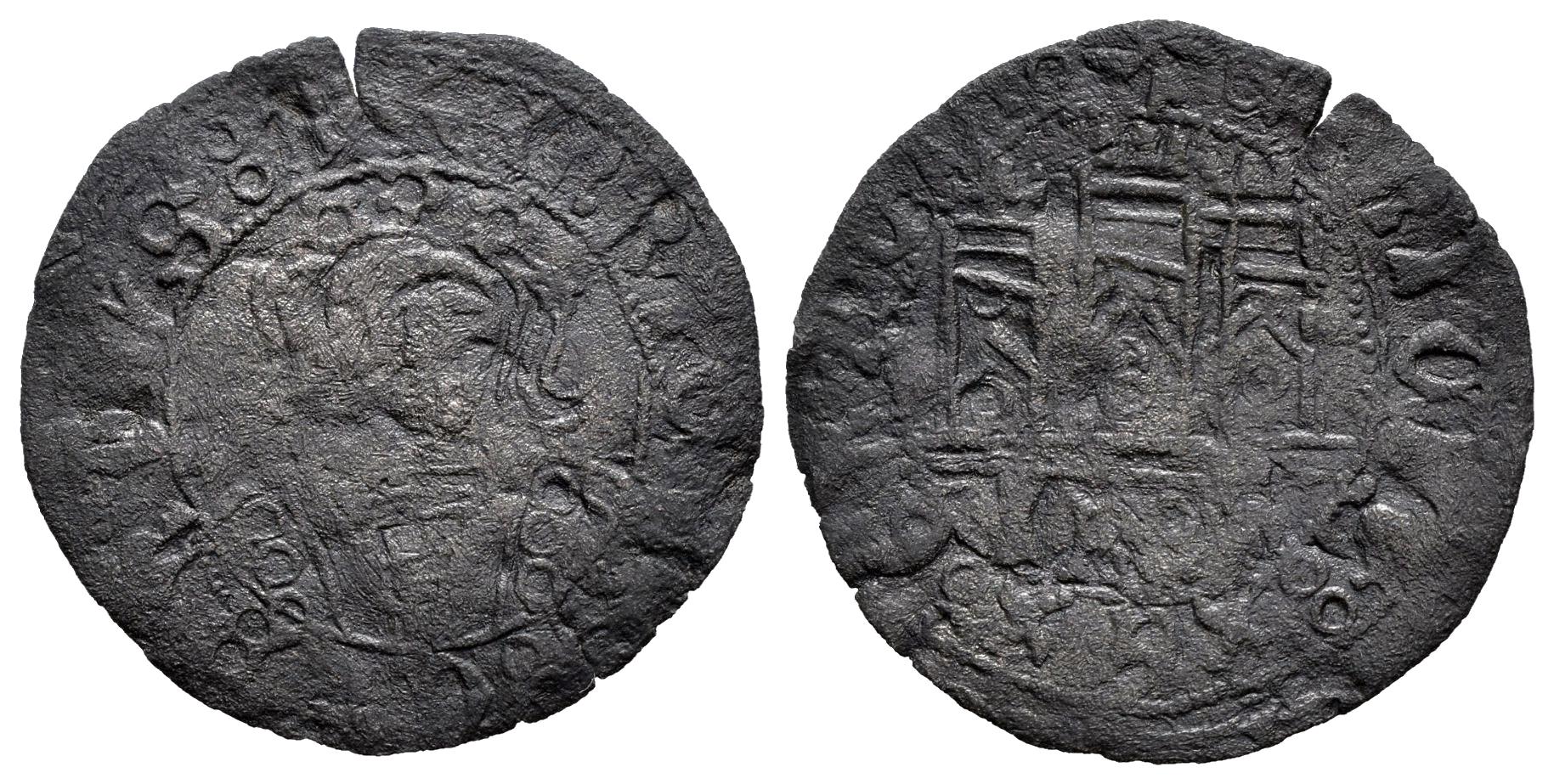 Kingdom of Castille and Leon. Enrique IV (1454-1474). 1/2 cuartillo. Jaén. (Bautista-1046 var.). Anv.: + ENRICVS : CARTVS : DEI : G : . Rev.: + ENRICVS : QVARTVS : ¿R?. Bi. 1,06 g. JAEN under the castle. Contemporary counterfeit. Almost F. Est...25,00.
