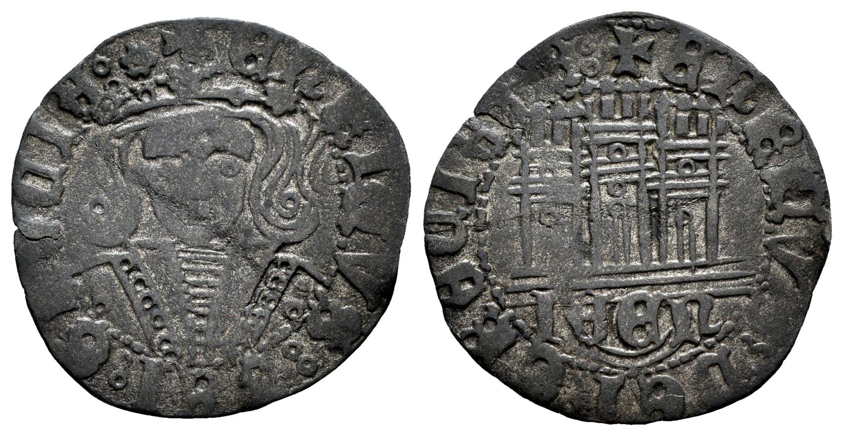 Kingdom of Castille and Leon. Enrique IV (1454-1474). 1/2 cuartillo. Jaén. (Bautista-1046 var.). Anv.: + ENRICVS : DEI : GRACIA : ✿. Rev.: + ENRICVS : DEI : GRACIA : R :. Bi. 1,08 g. JAEN below the castle. Partial engraving of the lobed below the JAEN mint, with other mints it could occur by having type with a lobed back but not in the Jaén mint since it lacks said types. It also has an atypical hairstyle since we can see how the engraver recorded waves of hair on the right that were beyond the usual. Very rare. VF/Choice VF. Est...200,00.