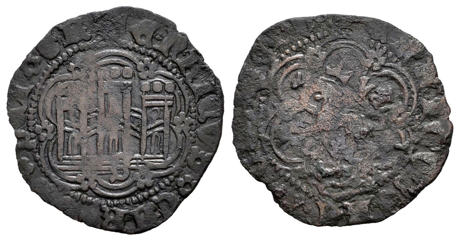 Kingdom of Castille and Leon. Enrique IV (1454-1474). Blanca. Sevilla. (Bautista-1074 var.). Anv.: + ENRICVS ✿ CARTVS ✿ DEI ✿ GR. Rev.: + ENRICVS ✿ REX ✿ CASTELL ◦ . Bi. 1,04 g. S below the castle. Flowers at the intersections of the lobed. Choice F/Almost F. Est...20,00.