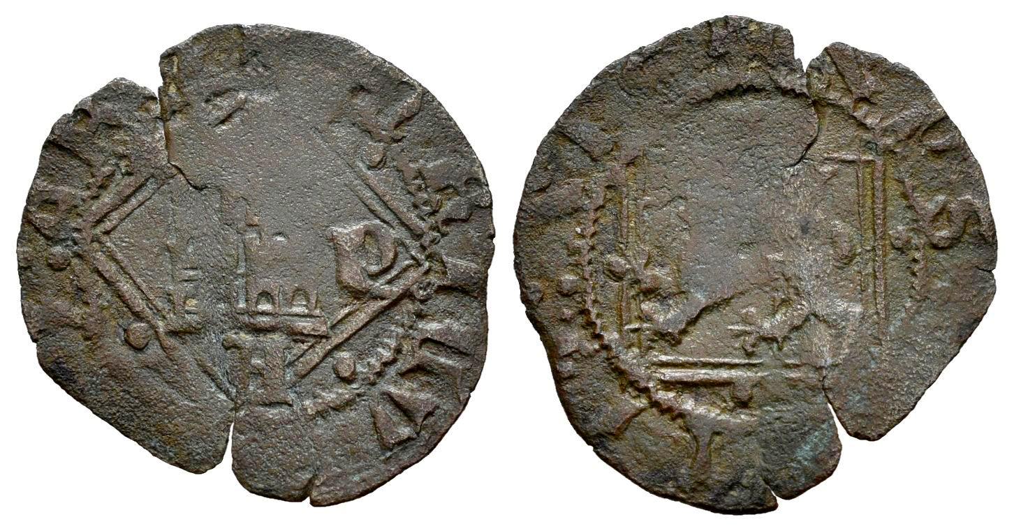 Kingdom of Castille and Leon. Princess Elizabeth (1471-1474). Blanca de rombo. Ávila. (Bautista-1078.8 var.). Anv.: + ENRICV ... I : GRA. Rev.: + XPS ... CIT : XPS. Bi. 0,63 g. A below the castle. P to the right of the castle. Scarce. F. Est...45,00.