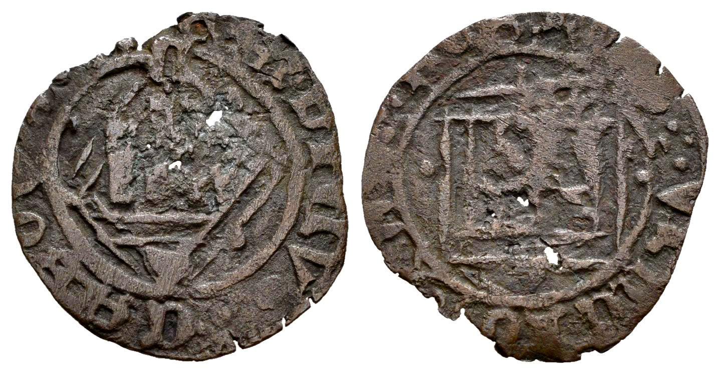 Kingdom of Castille and Leon. Enrique IV (1454-1474). Blanca de rombo. Cuenca. (Bautista-1081.5 var.). Anv.: + ENRICVS : CARTVS : .... Rev.: XPS ·:· VINCIT ·:· XPS ·:· REG. Bi. 0,69 g. Bowl below the castle and C above. Choice F. Est...20,00.