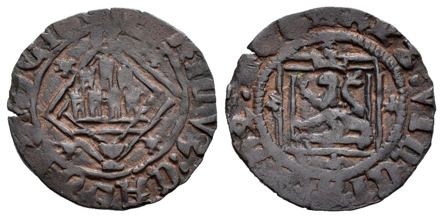 Kingdom of Castille and Leon. Enrique IV (1454-1474). Blanca de rombo. Cuenca. (Bautista-1081.5 var.). Anv.: + ENRICVS : CARTVS : DEI G. Rev.:  + XPS : VINCIT : XPS : REG. Bi. 1,12 g. Bowl below the castle and C above. VF. Est...50,00.
