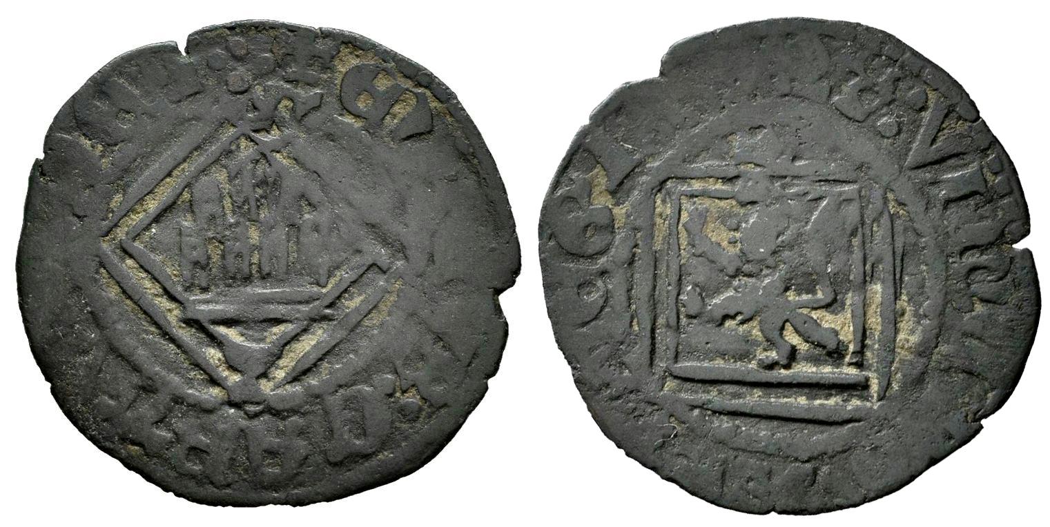 Kingdom of Castille and Leon. Enrique IV (1454-1474). Blanca de rombo. Cuenca. (Bautista-1081.5 var.). Anv.: + ENRICVS : CARTVS : DEI ·:·. Rev.:  + XPS : VINCIT : XPS : REGI. Bi. 0,85 g. Bowl below the castle and C above. Choice F. Est...25,00.