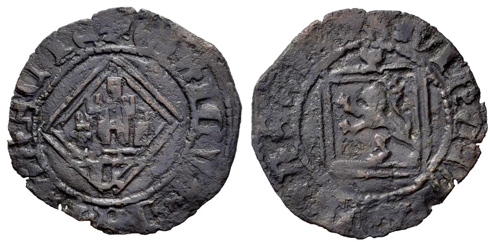 Kingdom of Castille and Leon. Enrique IV (1454-1474). Blanca de rombo. Cuenca. (Bautista-1081.14 var.). Anv.: + ENRICVS ✿ DEI ✿ GRACIA. Rev.: ✿ XPS ✿ VINCIT ✿ XPS ✿ REGIN. Bi. 0,90 g. C below the castle and bowl over the lion. Scarce. Almost VF. Est...40,00.