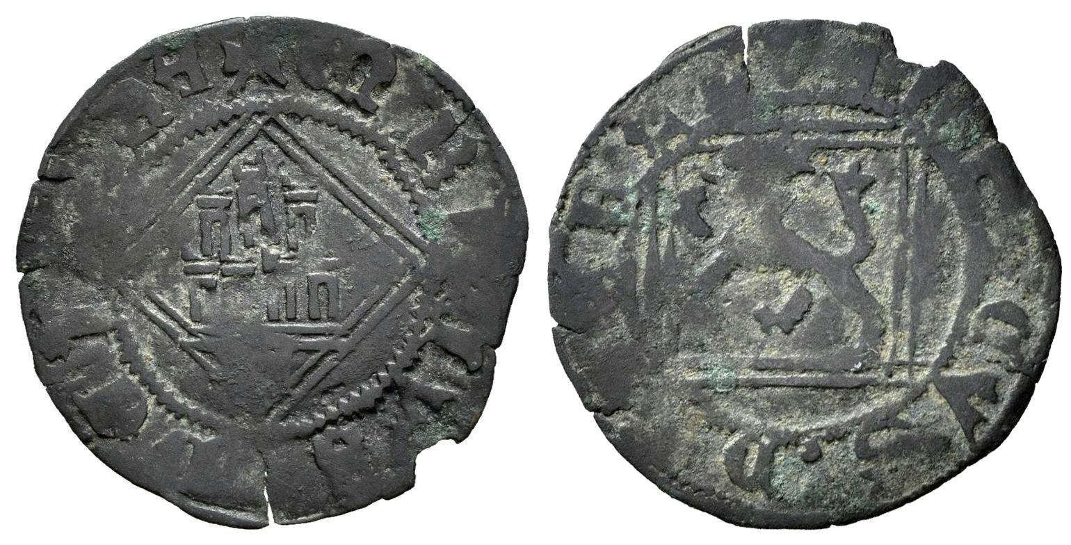 Kingdom of Castille and Leon. Enrique IV (1454-1474). Blanca de rombo. Segovia. (Bautista-1083 var.). Anv.: + ENRICVS DEI GRA. Rev.: + ENRICVS : DEI : GRA. Bi. 0,70 g. Aqueduct below the castle. Almost VF. Est...25,00.