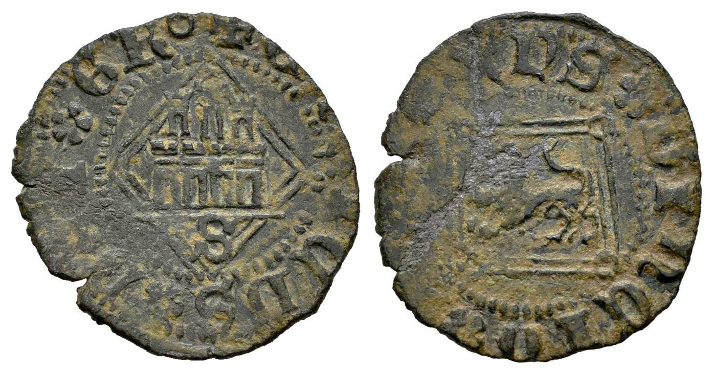Kingdom of Castille and Leon. Enrique IV (1454-1474). Blanca de rombo. Sevilla. (Bautista-1084 var.). Anv.: + ENRICVS ✿ DEI ✿ GR ◦ . Rev.: ... XPS ✿ VINCIT ✿ .... Bi. 1,07 g. S below the castle. Roundels at the vertices of the rhombus on the reverse. VF/Almost VF. Est...40,00.