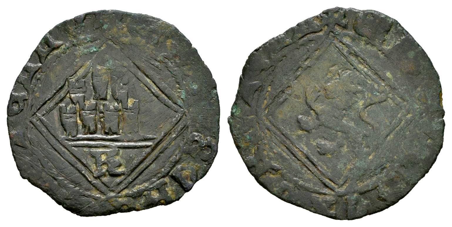 Kingdom of Castille and Leon. Enrique IV (1454-1474). Blanca de rombo. Ávila. (Bautista-Unlisted). (Imperatrix-E4:31.5). Anv.: + ENRICVƧ : CASTELL. Rev.: + ENRICVS : REX : CASTELL. Bi. 0,85 g. A in the opposite direction below the castle. Very rare. Choice F/F. Est...40,00.