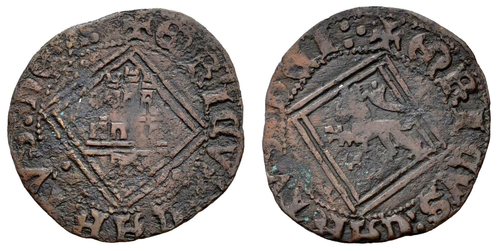Kingdom of Castille and Leon. Enrique IV (1454-1474). Blanca de rombo. Toledo. (Bautista-1085 var.). Anv.: + ENRICVS : CARTVS : DEI : . Rev.: + ENRICVS : CARTVS : DEI ⠕. Bi. 0,89 g. T below the castle. Choice F. Est...20,00.