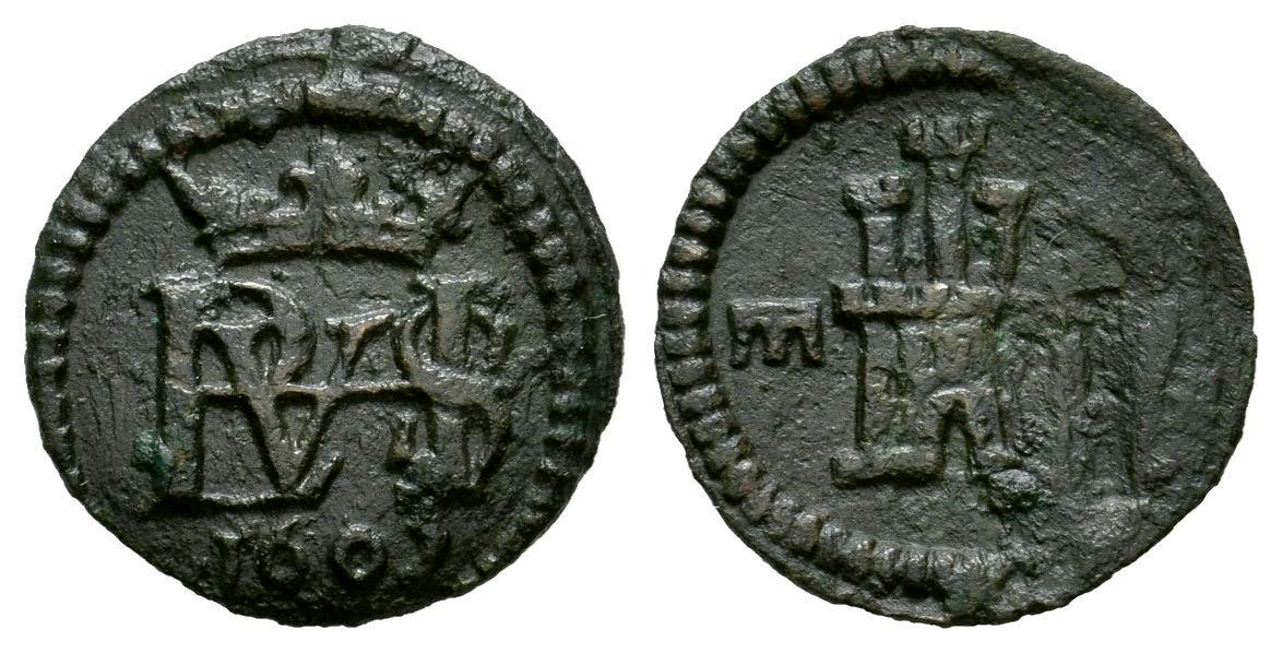 Philip III (1598-1621). 1 maravedi. 1602. Segovia. (Cal-111). Ae. 0,64 g. Defect on reverse. VF. Est...35,00.