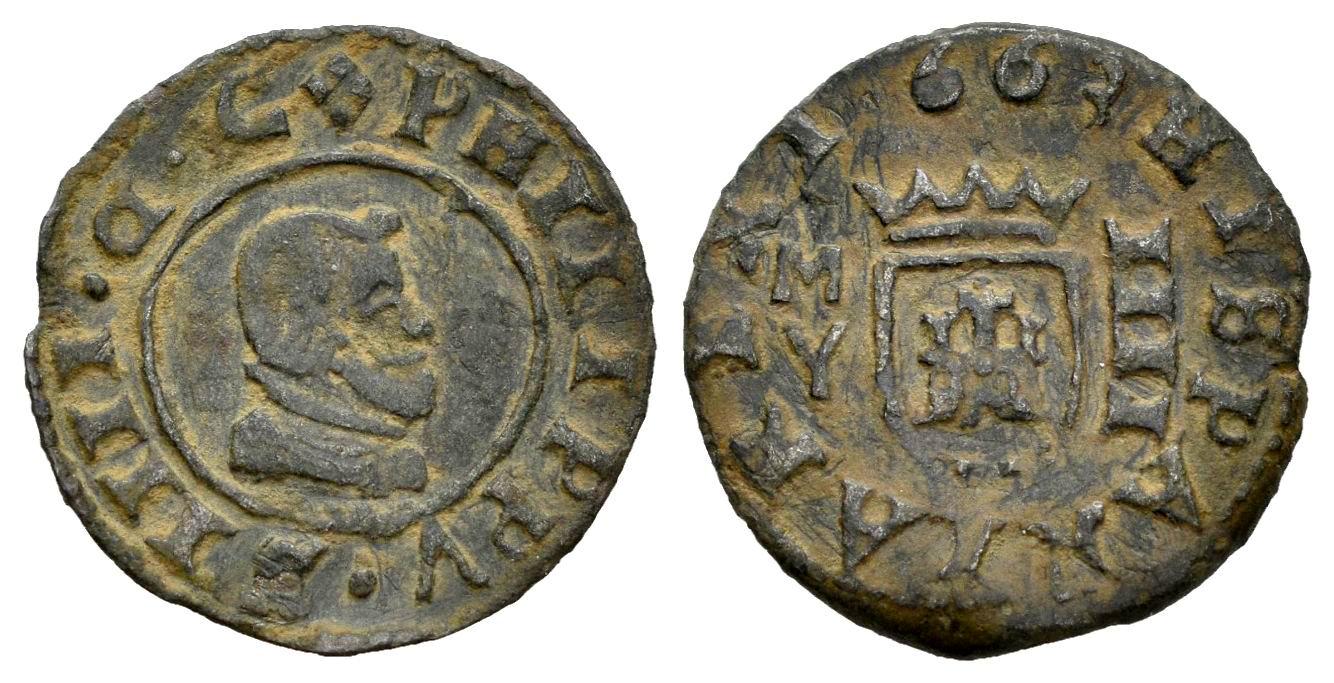 Philip IV (1621-1665). 4 maravedis. 1663. Madrid. Y. (Cal-239). (Cal-M459). Ae. 0,88 g. Inverted D on obverse. VF. Est...25,00.