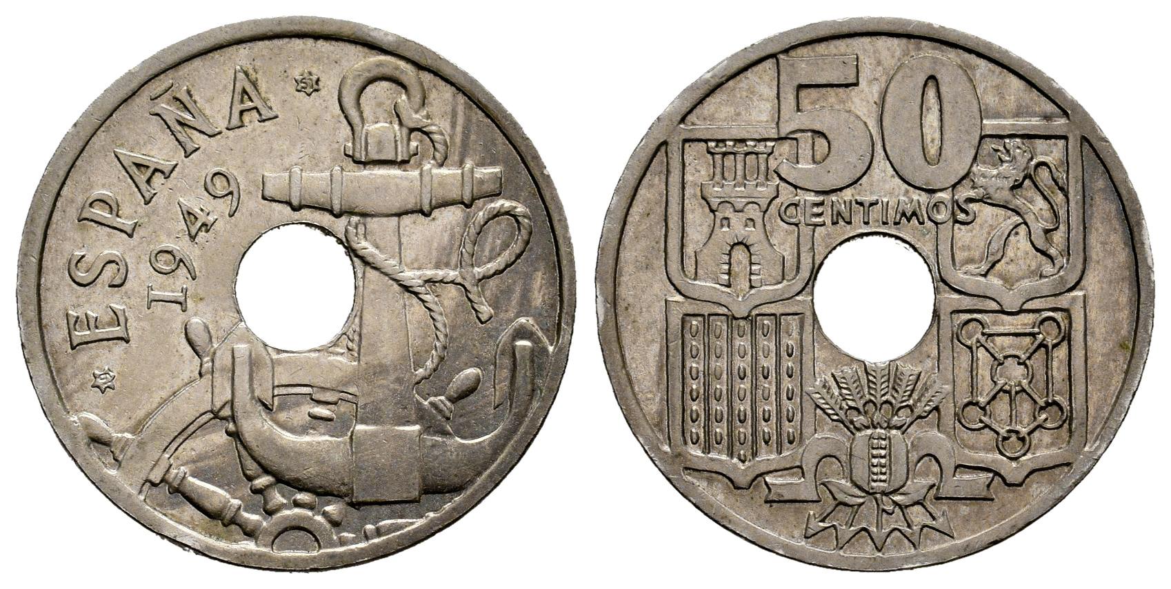 Estado Español (1936-1975). 50 centimos. 1949*19-51. Madrid. (Cal-21). 4,03 g. Inverted arrows. AU. Est...15,00.