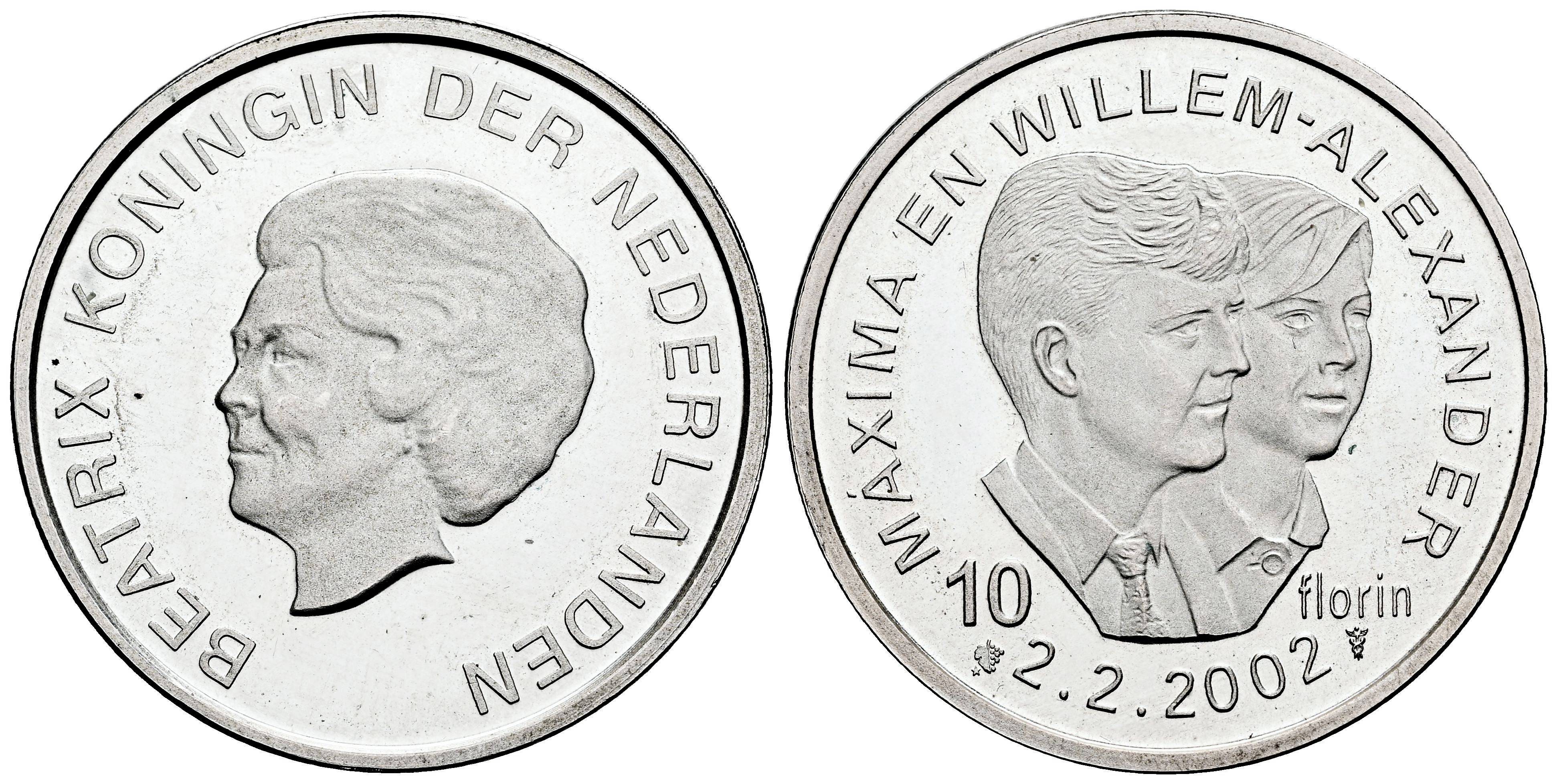 Aruba. Beatrix (1980-2013). 10 Florin. 2002. Utrecht. (Km-24). Ag. 17,80 g. Marriage of Prince Willem-Alexander with Máxima Zorreguieta. Almost MS. Est...30,00.