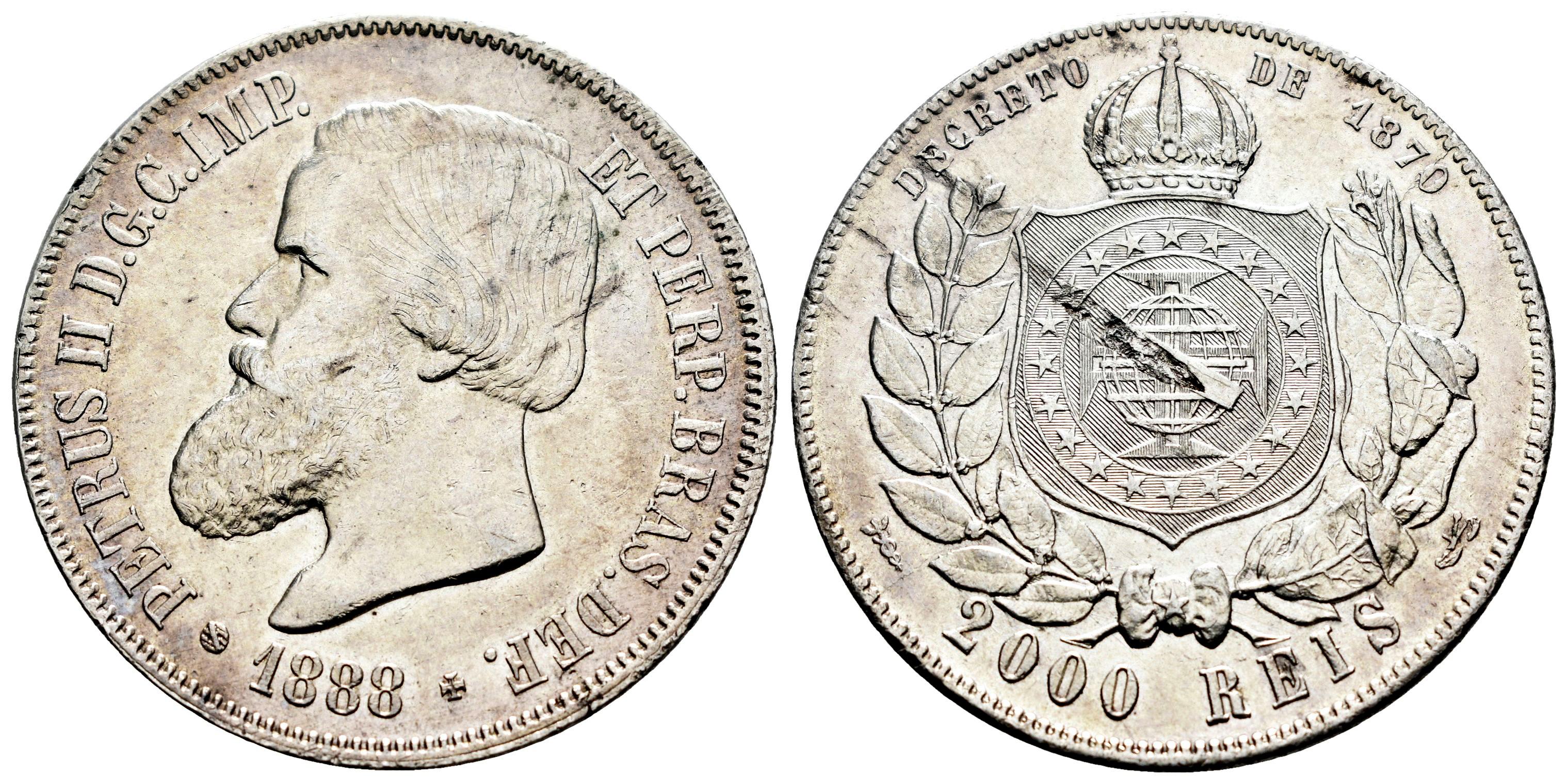 Brazil. D. Pedro II. 2000 Reis. 1888. (Km-485). Ag. 25,48 g. Original luster. XF. Est...60,00.