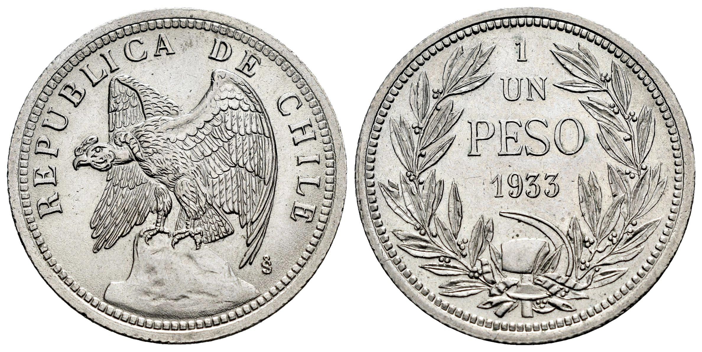 Chile. 1 peso. 1933. Santiago. (Km-176.1). 10,03 g. Mint state. Est...15,00.