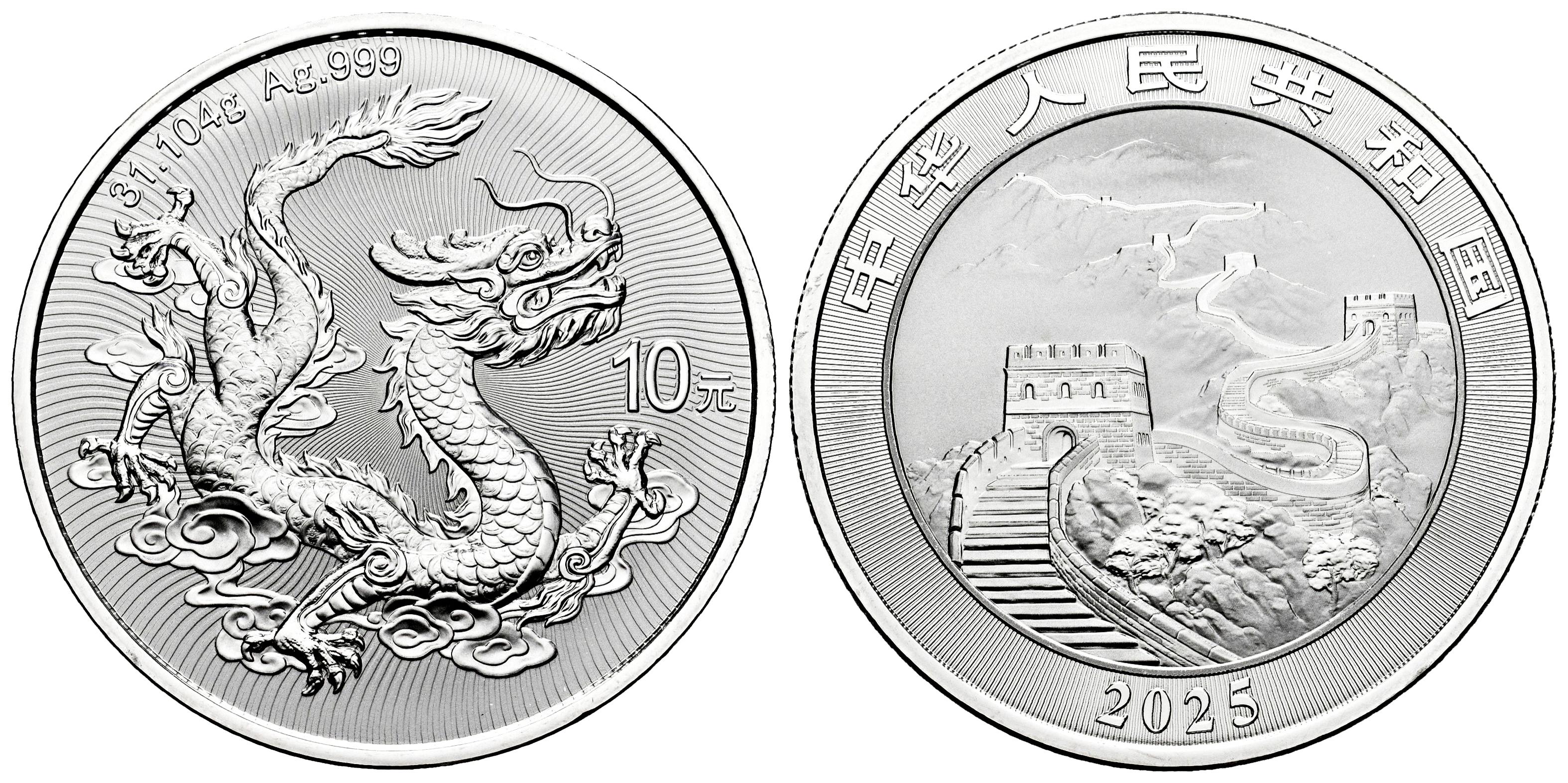 China. 10 yuan. 2025. Ag. 31,24 g. Dragon serie. Mint state. Est...50,00.