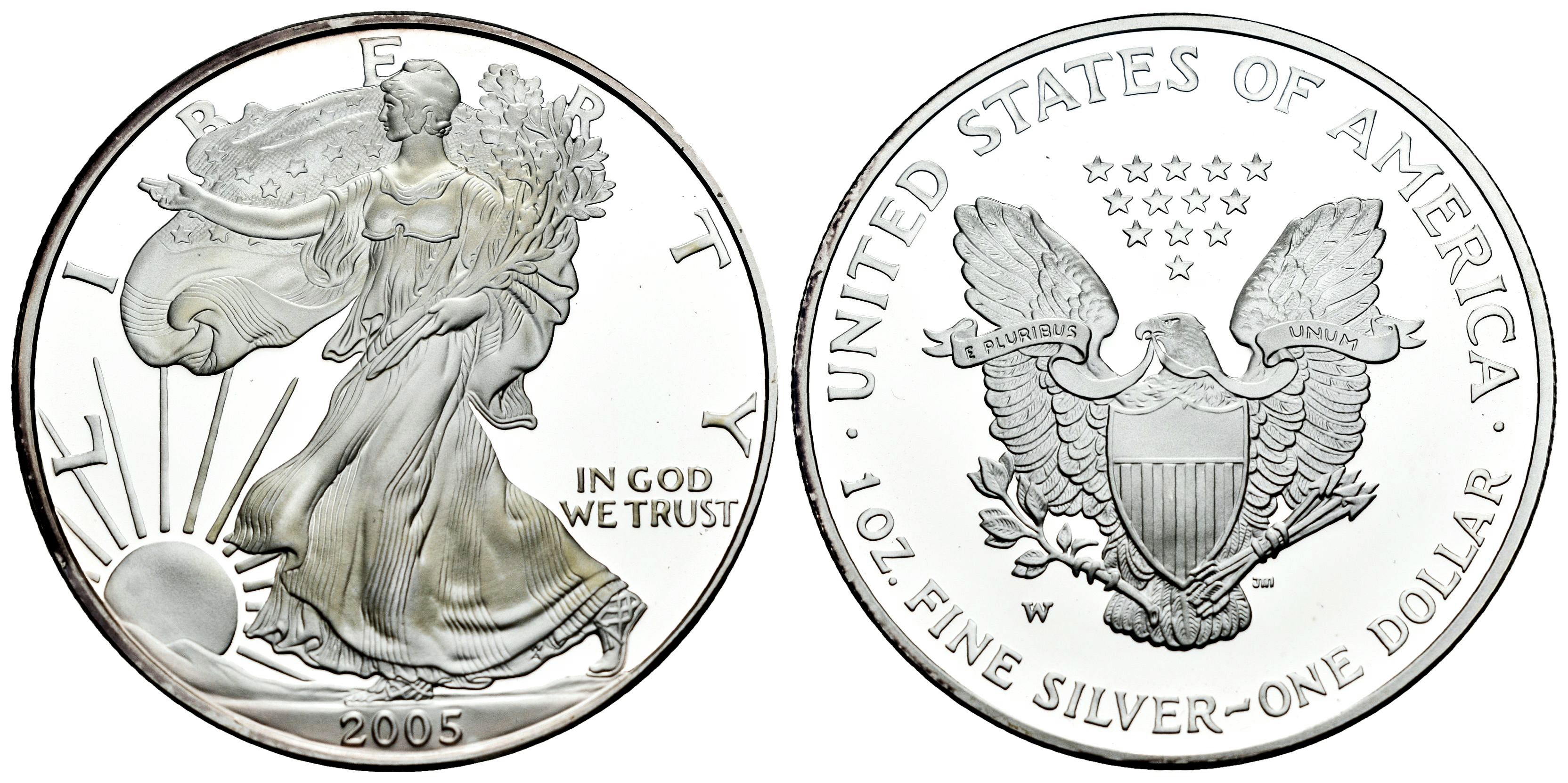 US Coins. Silver Eagle. 1 dollar. 2005. West Point. W. (Km-273). Ag. 31,34 g. PROOF. Est...45,00.