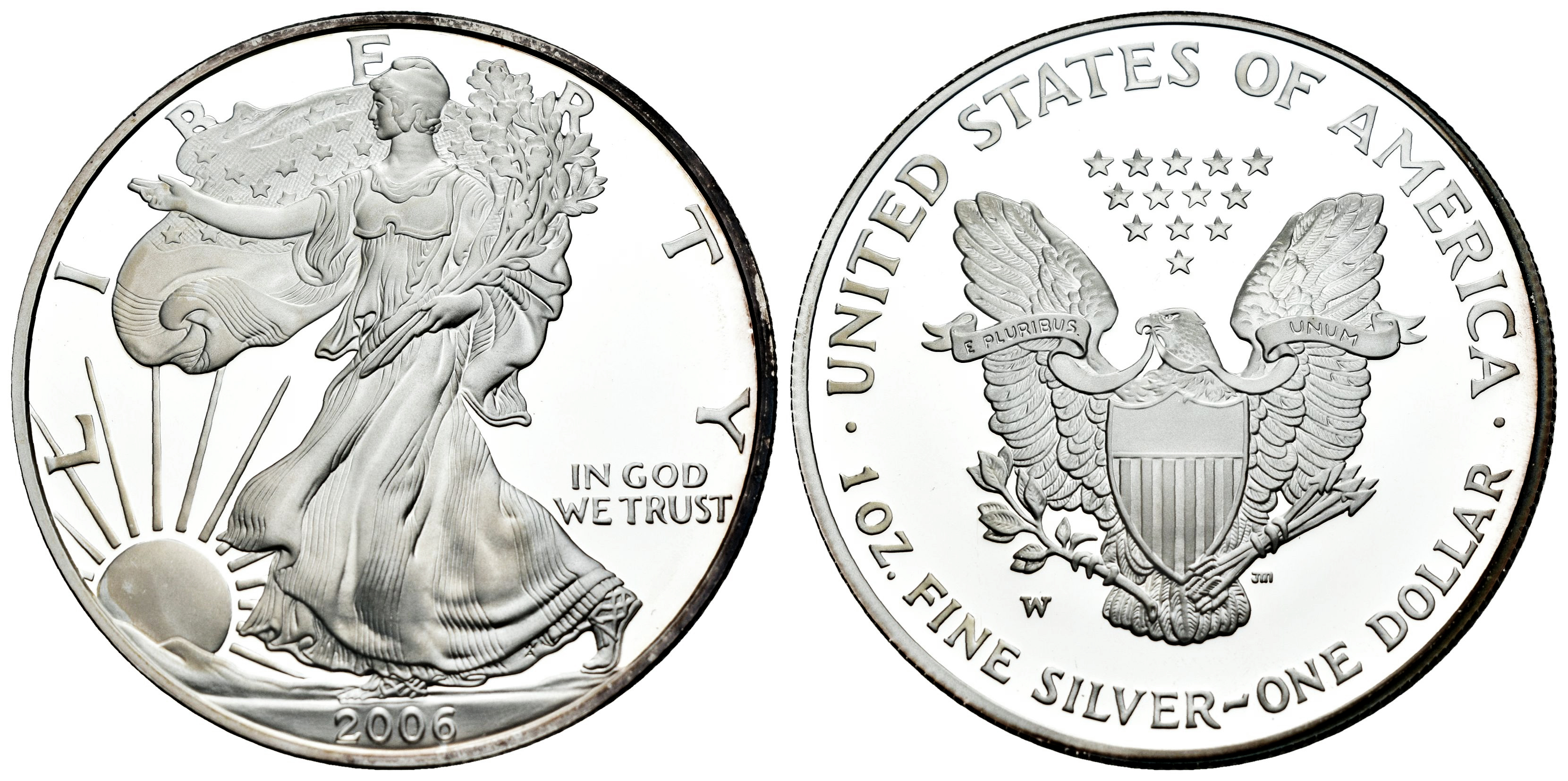US Coins. Silver Eagle. 1 dollar. 2006. West Point. W. (Km-273). Ag. 31,35 g. PROOF. Est...45,00.