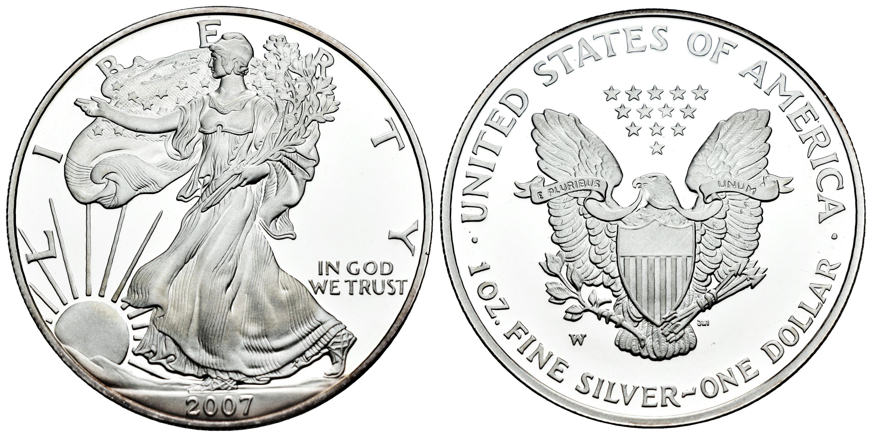 US Coins. Silver Eagle. 1 dollar. 2007. West Point. W. (Km-273). Ag. 31,20 g. PROOF. Est...45,00.