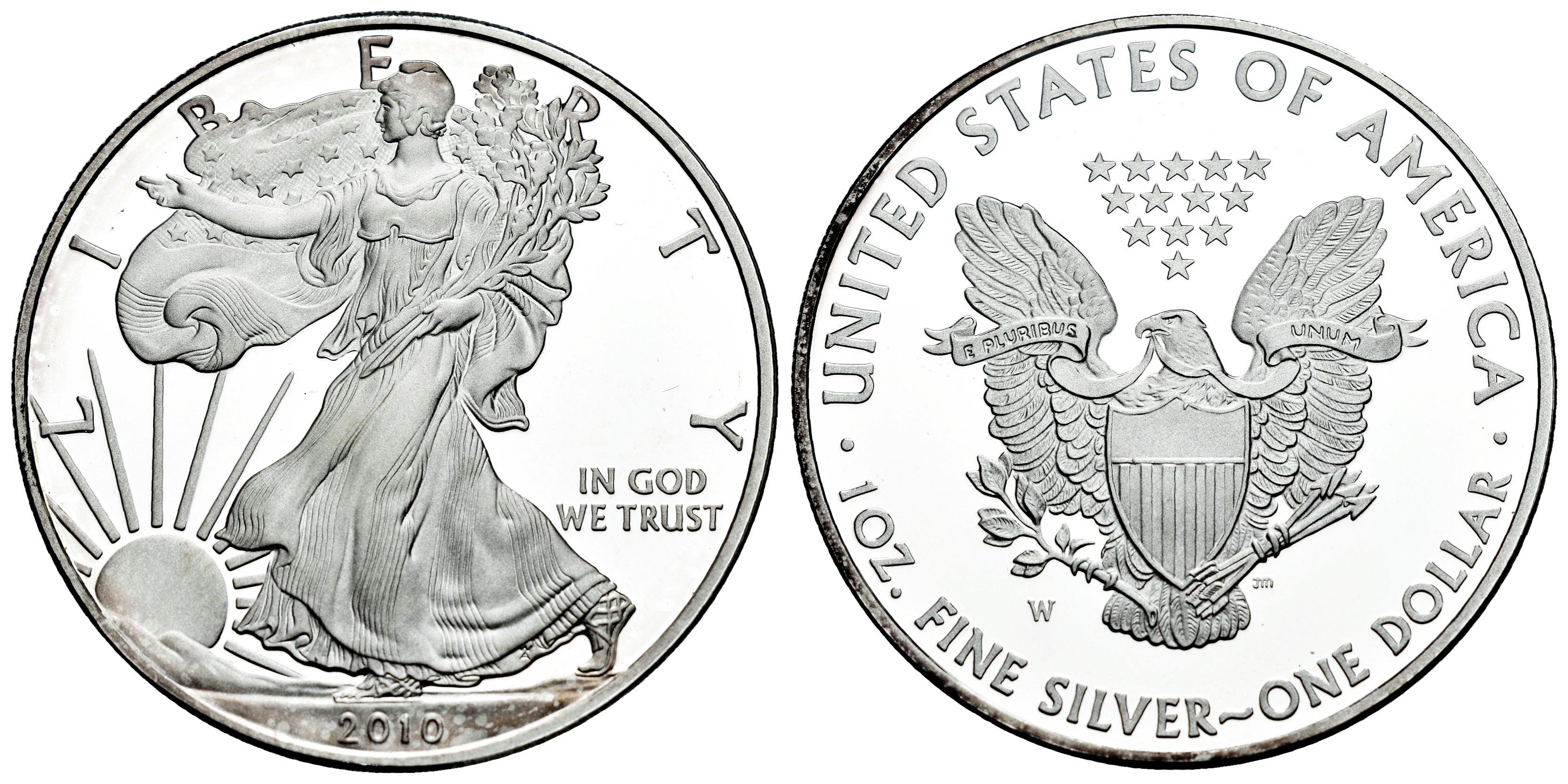 US Coins. Silver Eagle. 1 dollar. 2010. West Point. W. (Km-273). Ag. 31,32 g. PROOF. Est...45,00.