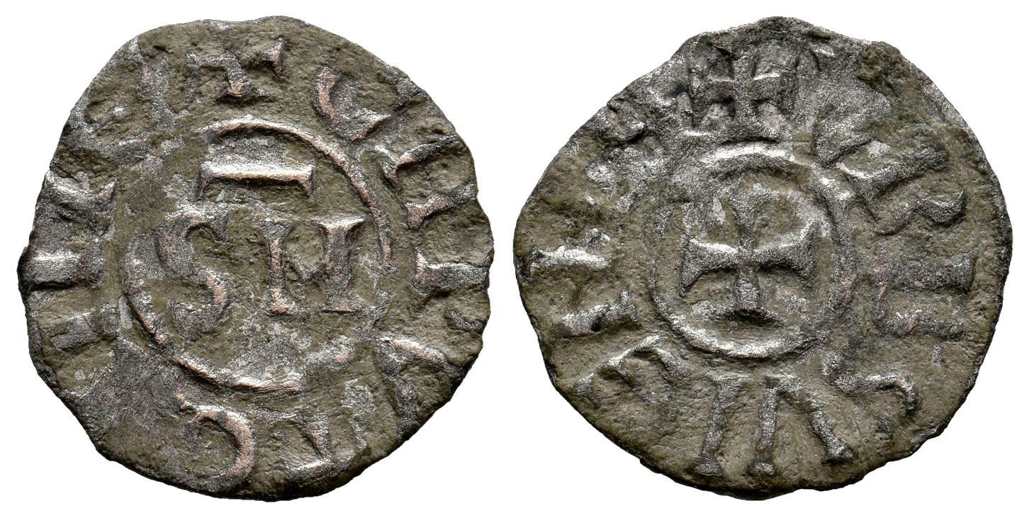 France. Archbishopric of Vienne. Dinero. Wien. (Boudeau-1043). (Poey d'Avant-4824). Anv.: + CAPVT GALLIE. SM (Monogram of Saint Maurice). Rev.: + VRBS VIENA. Cross. Bi. 0,88 g. Scarce. VF. Est...150,00.