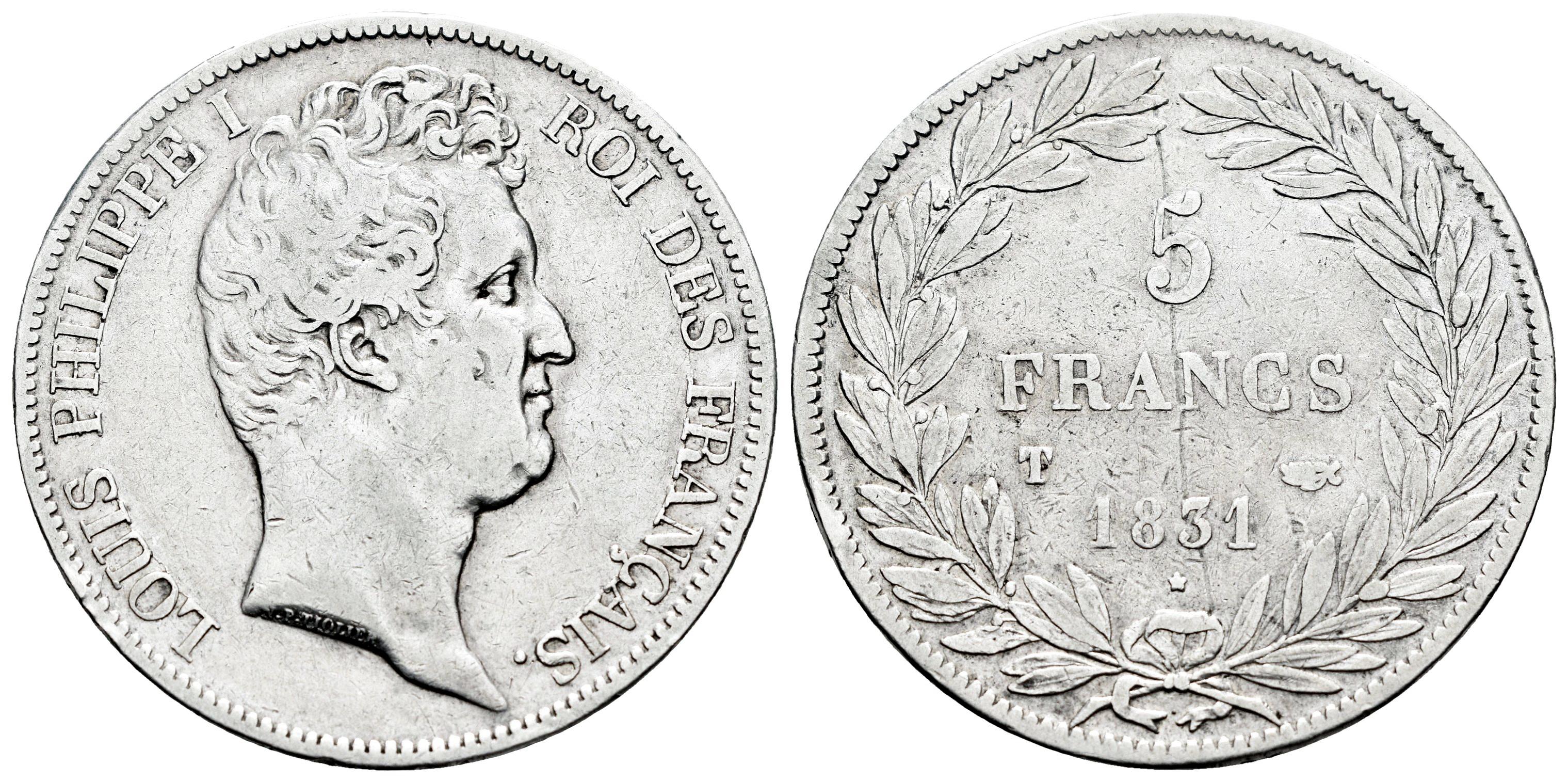 France. Louis Philippe (1830-1848). 5 francs. 1831. Nantes. T. (Km-745.12). (Gad-676). Ag. 24,74 g. Cleaned. Choice F/F. Est...25,00.