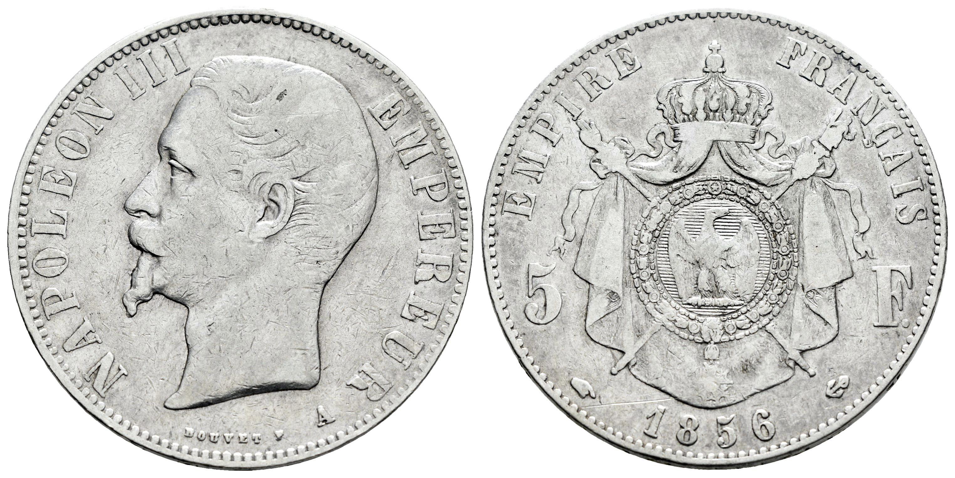 France. Napoleon III. 5 francs. 1856. Paris. A. (Km-782.1). (Gad-734). Ag. 24,78 g. Cleaned. F. Est...25,00.