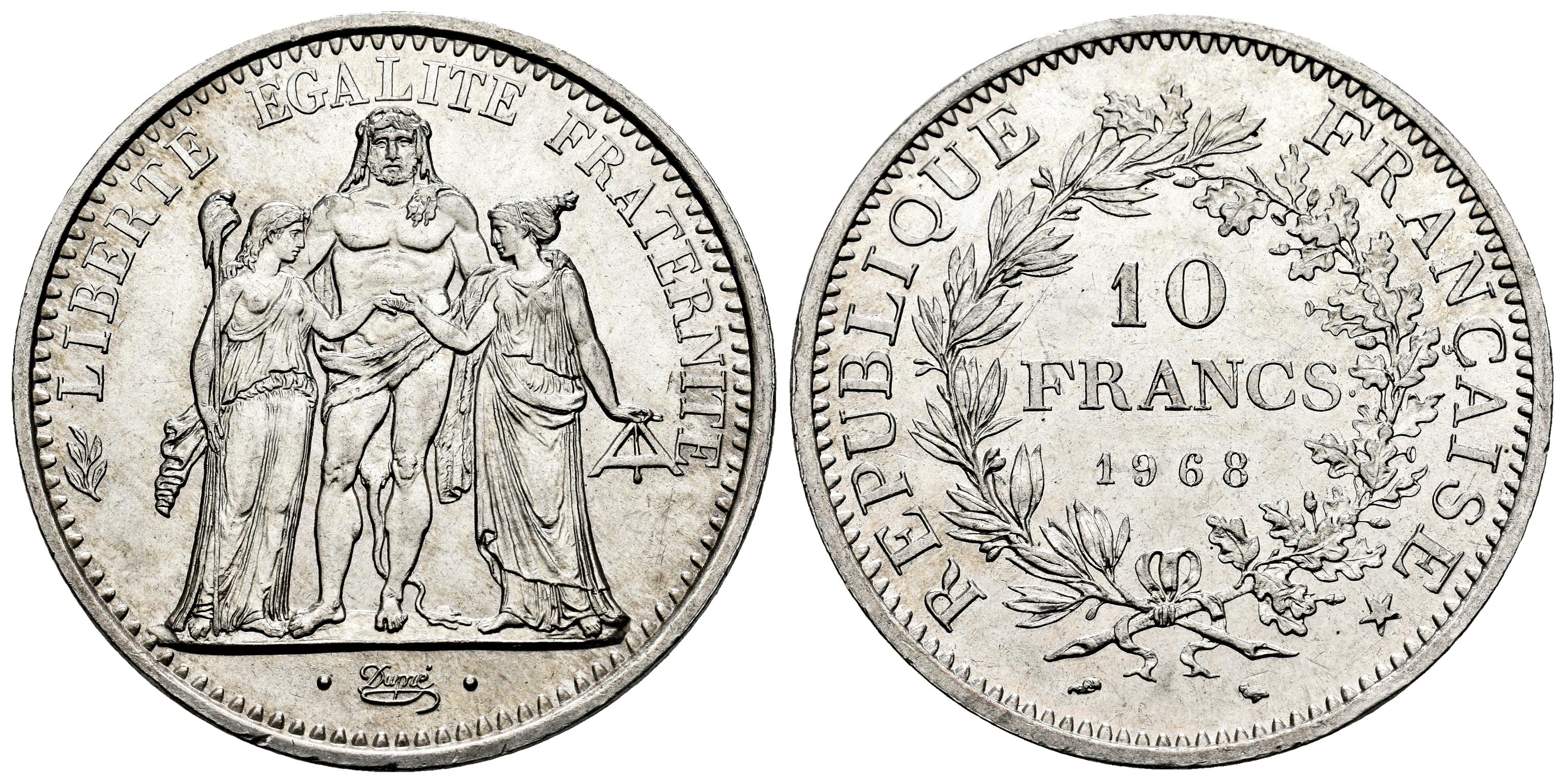 France. 10 francs. 1968. (Km-932). (Gad-813). Ag. 25,05 g. Plenty of original luster. Almost MS. Est...25,00.
