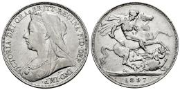 Great Britain. Victoria. 1 crown. 1897. (Km-783). (S-3937). Ag. 28,17 g. ANNO REGNI LXI. Cleaned. Almost VF/VF. Est...50,00.