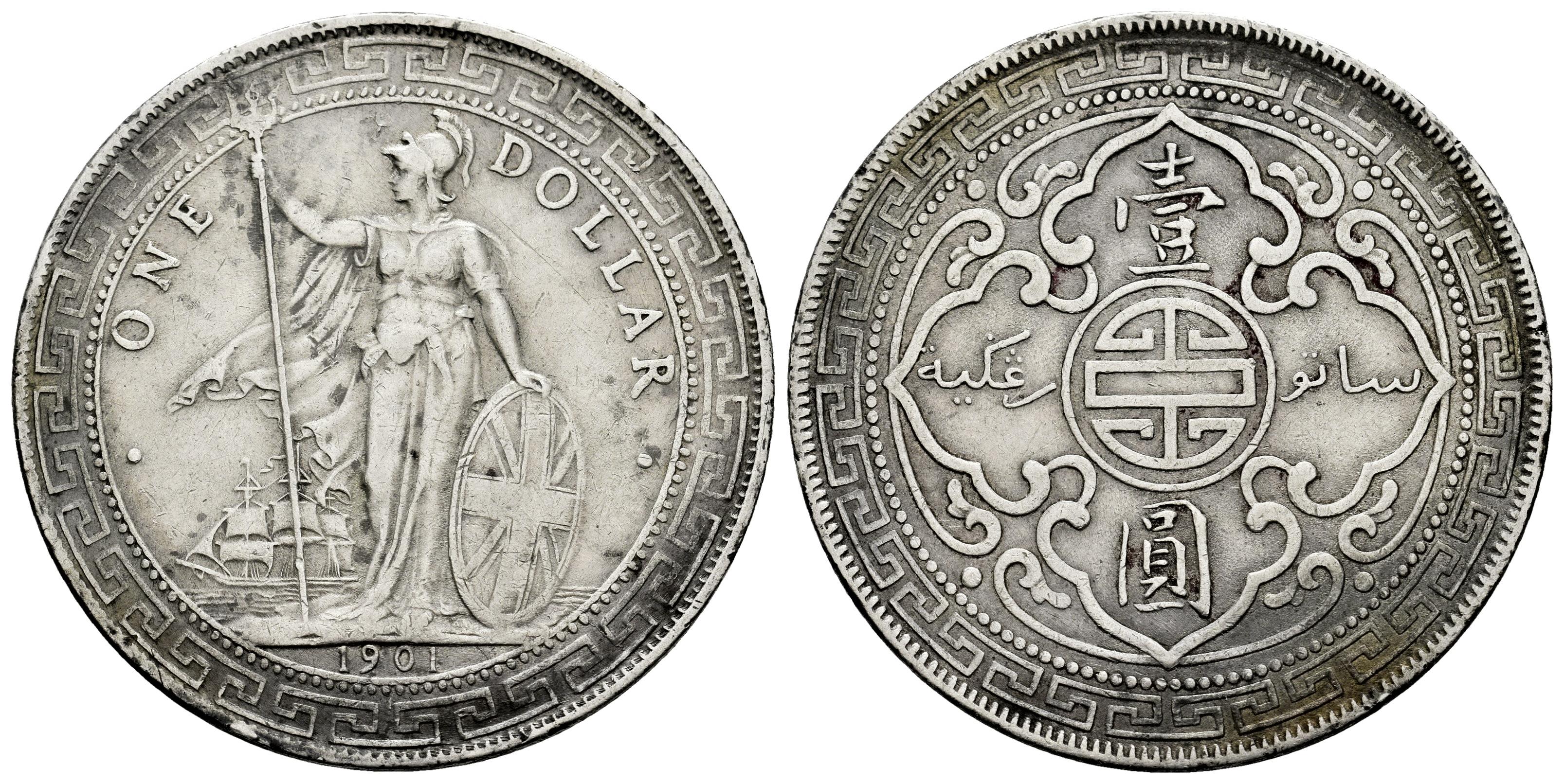 Great Britain. Edward VII. Trade dollar. 1901. Bombay. (Km-Tn5). Ag. 26,81 g. Minor nicks on edge. VF. Est...50,00.