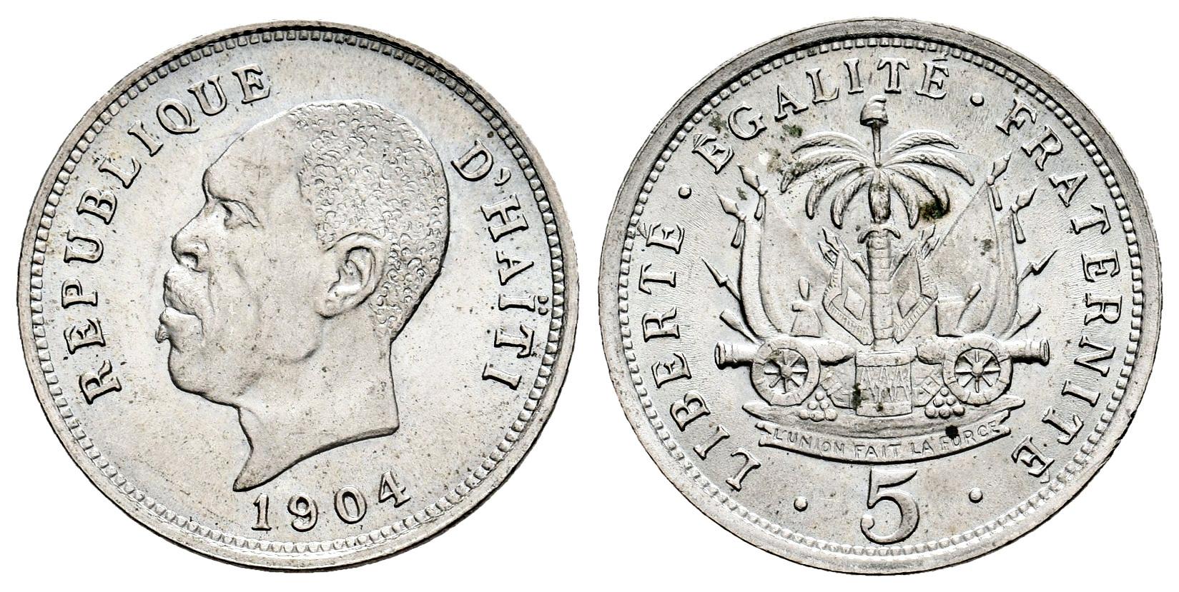 Haiti. 5 centimes. 1904. (Km-53). Ag. 2,81 g. Original luster. Mint state. Est...50,00.