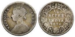 British India. Victoria. 1/4 rupee. 1874. Calcuta. (Km-470). Ag. 2,71 g. F. Est...10,00.