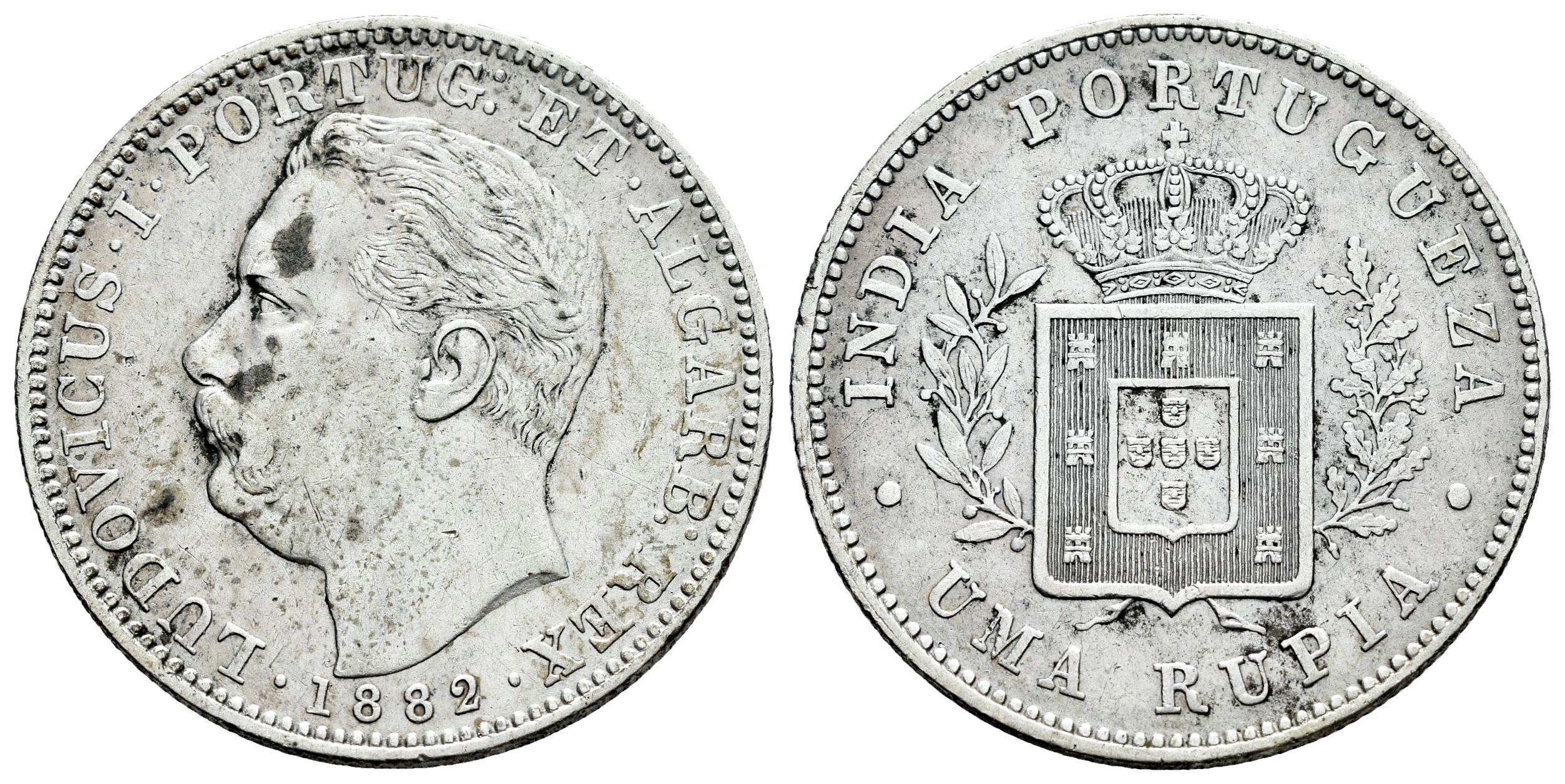 Portuguese India. D. Luís I (1861-1889). 1 rupee. 1882. (Km-312). (Gomes-14.04). Ag. 11,65 g. Light stains. Choice VF. Est...30,00.