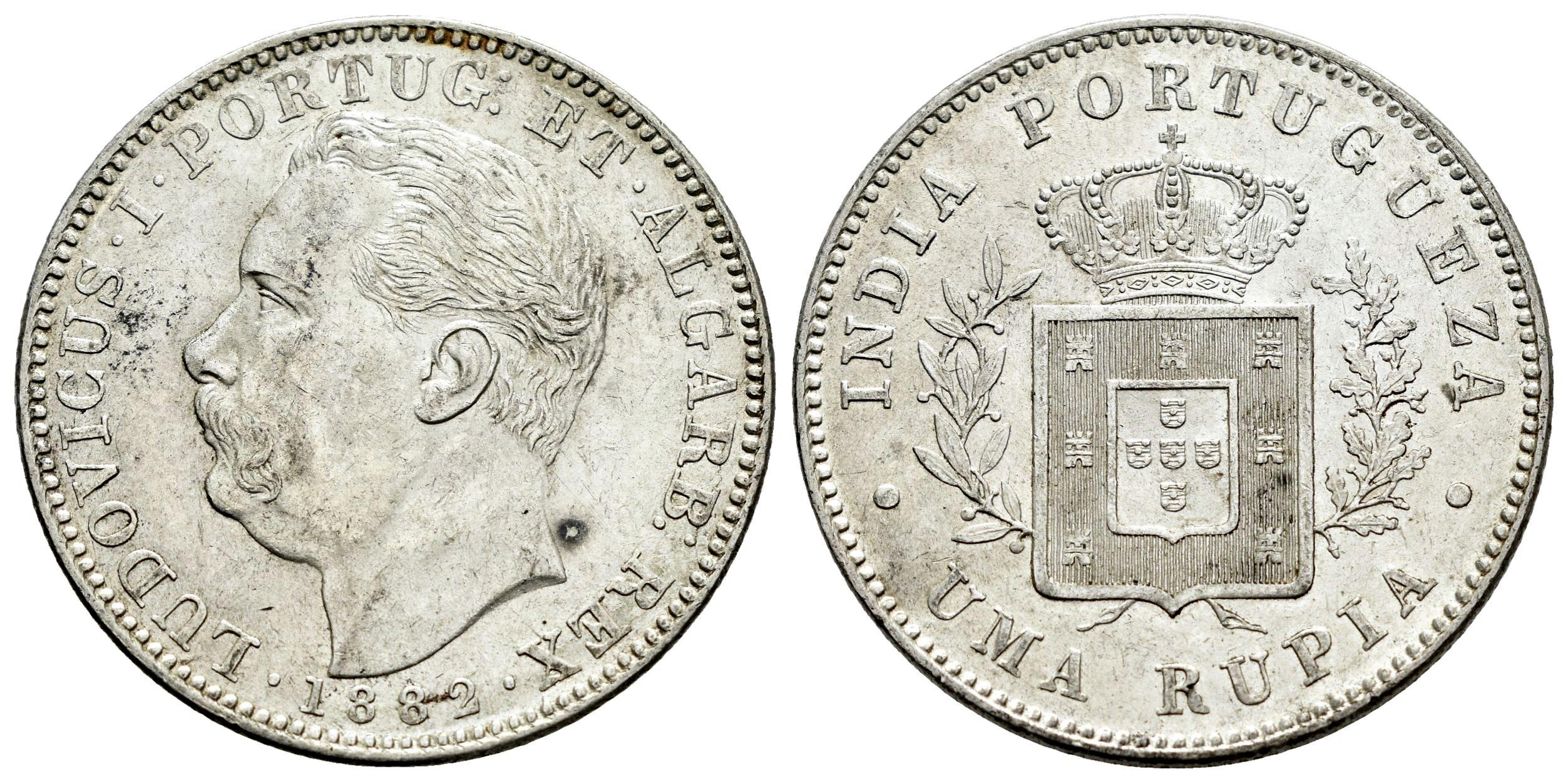 Portuguese India. D. Luís I (1861-1889). 1 Rupee. 1882. Calcuta. (Km-312). (Gomes-14.04). Ag. 11,65 g. Traces of luster. Almost XF/XF. Est...40,00.