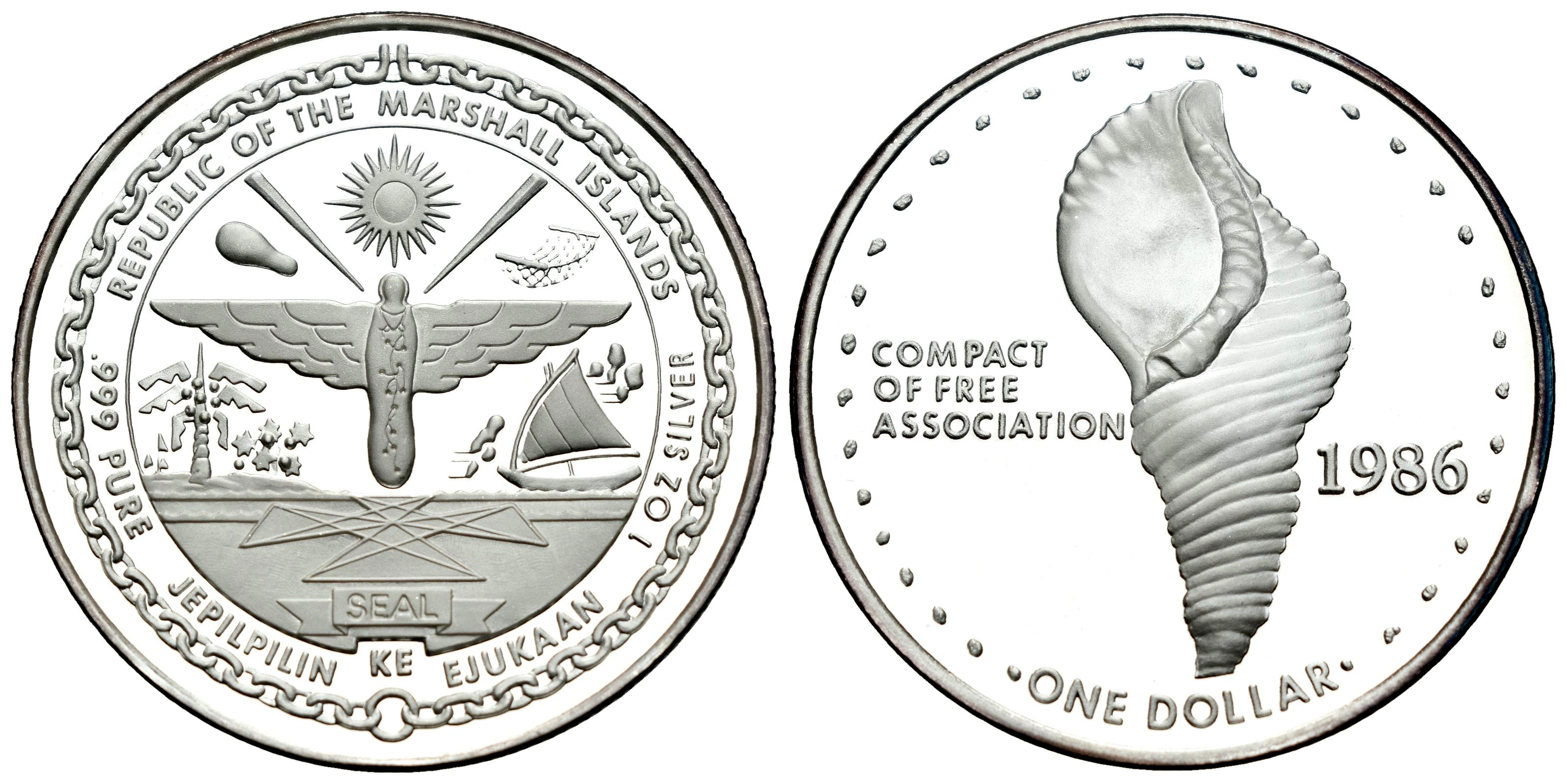 Marshall Islands. 1 dollar. 1986. (Km-2). Ag. 31,46 g. Mintage: 10.000. PROOF. Est...40,00.