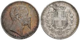 Italy. Sardinia. Vittorio Emanuele II. 5 lire. 1852. Genoa. P. (Km-144.2). (Pagani-374). (Mont-45). Ag. 24,69 g. Minor nicks on edge. Lightly toned. Scarce. Choice F. Est...100,00.