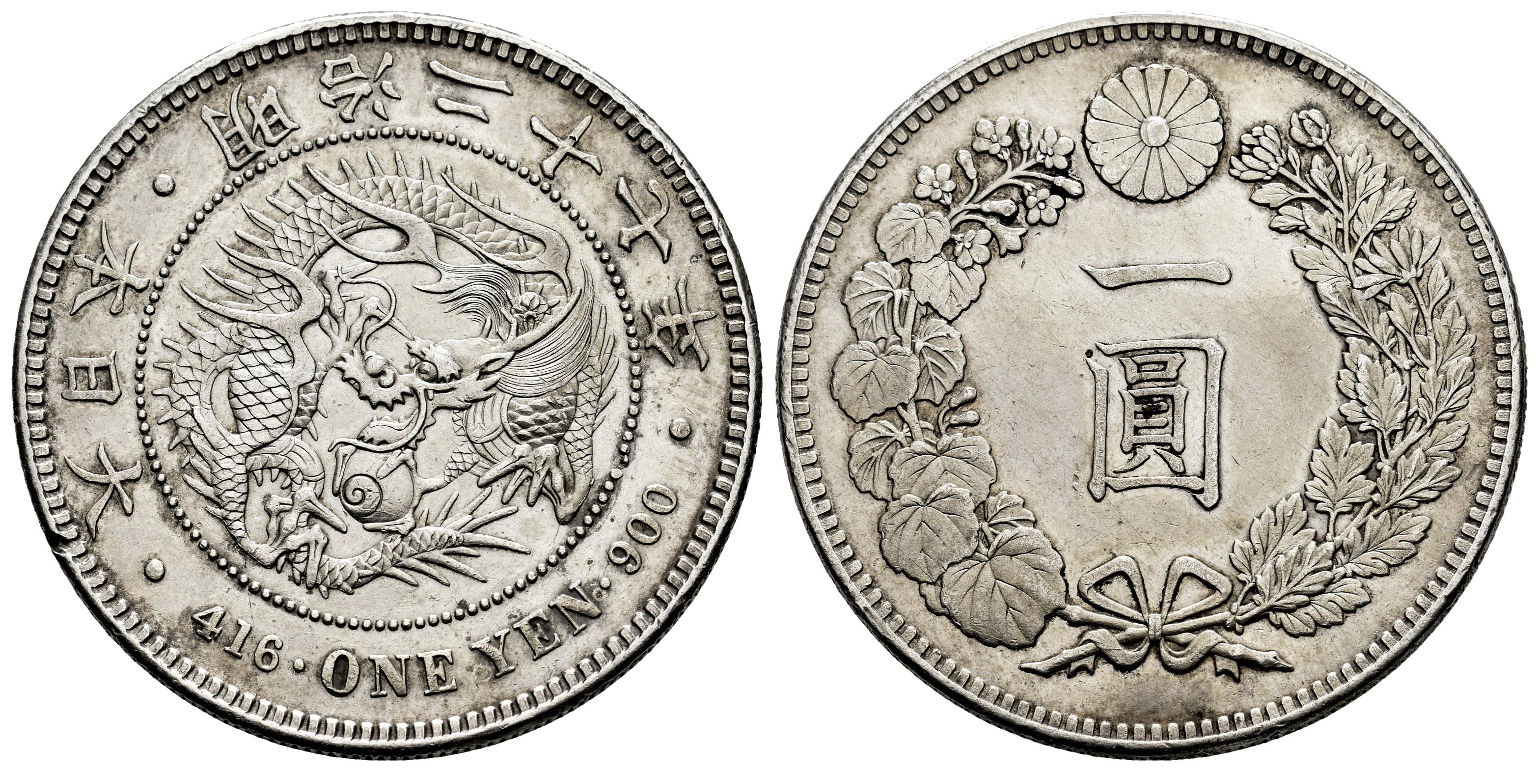 Japan. Mutsuhito (Meiji). 1 yen. 1904 (año 37). (Km-Y#A25.3). Ag. 26,96 g. Minimal hairlines. Traces of luster. Choice VF/Almost XF. Est...120,00.