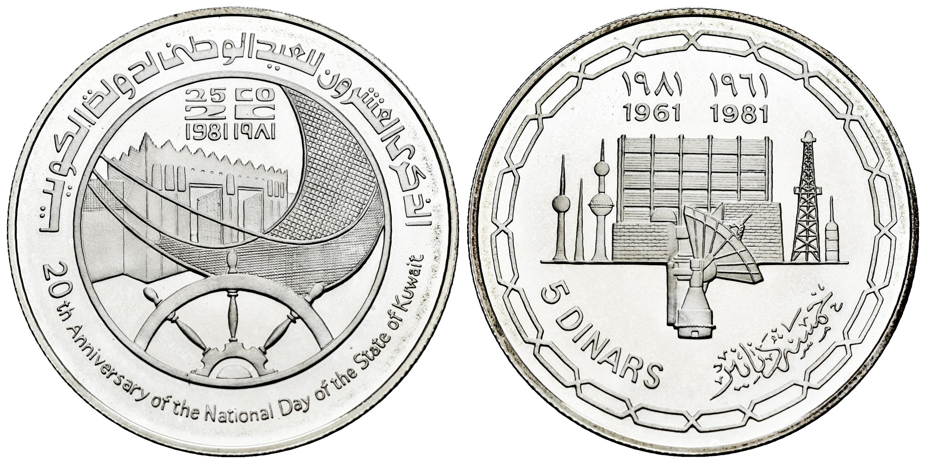 Kuwait. 5 dinars. ND (1981). (Km-18). Ag. 23,31 g. 20th Anniversary of independentai. Mintage 10.00. PROOF. Est...45,00.