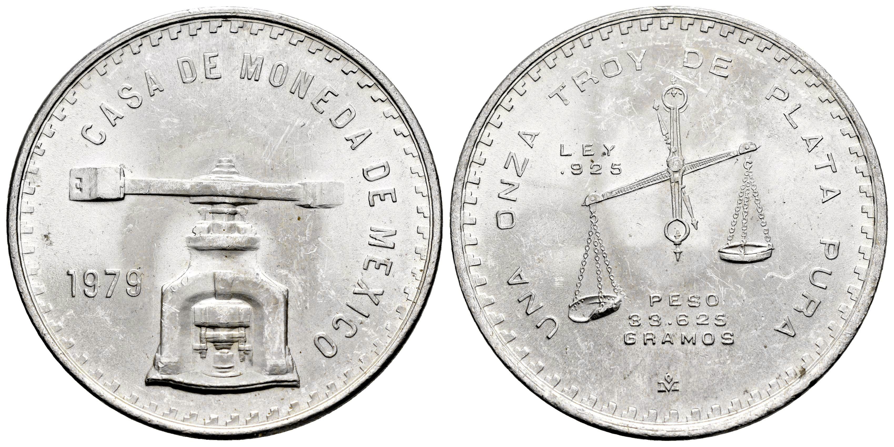 Mexico. 1 ounce. 1979. Mexico. (Km-M49a). Ag. 33,69 g. Original luster. Mint state. Est...45,00.