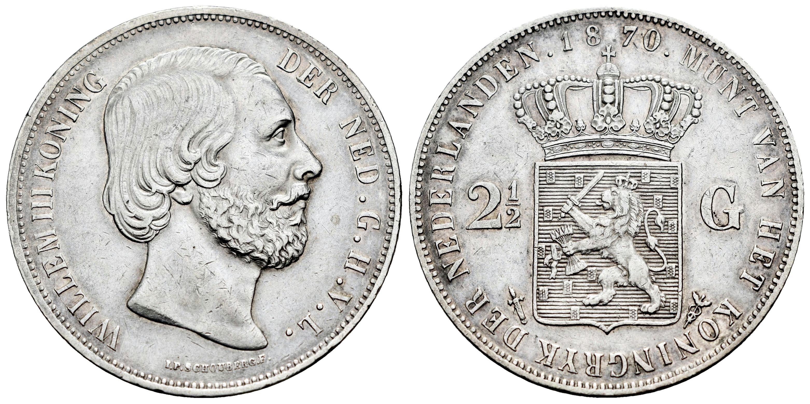 Low Countries. Willem III (1849-1890). 2 1/2 gulden. 1870. (Km-82). Ag. 24,95 g. VF/Choice VF. Est...35,00.