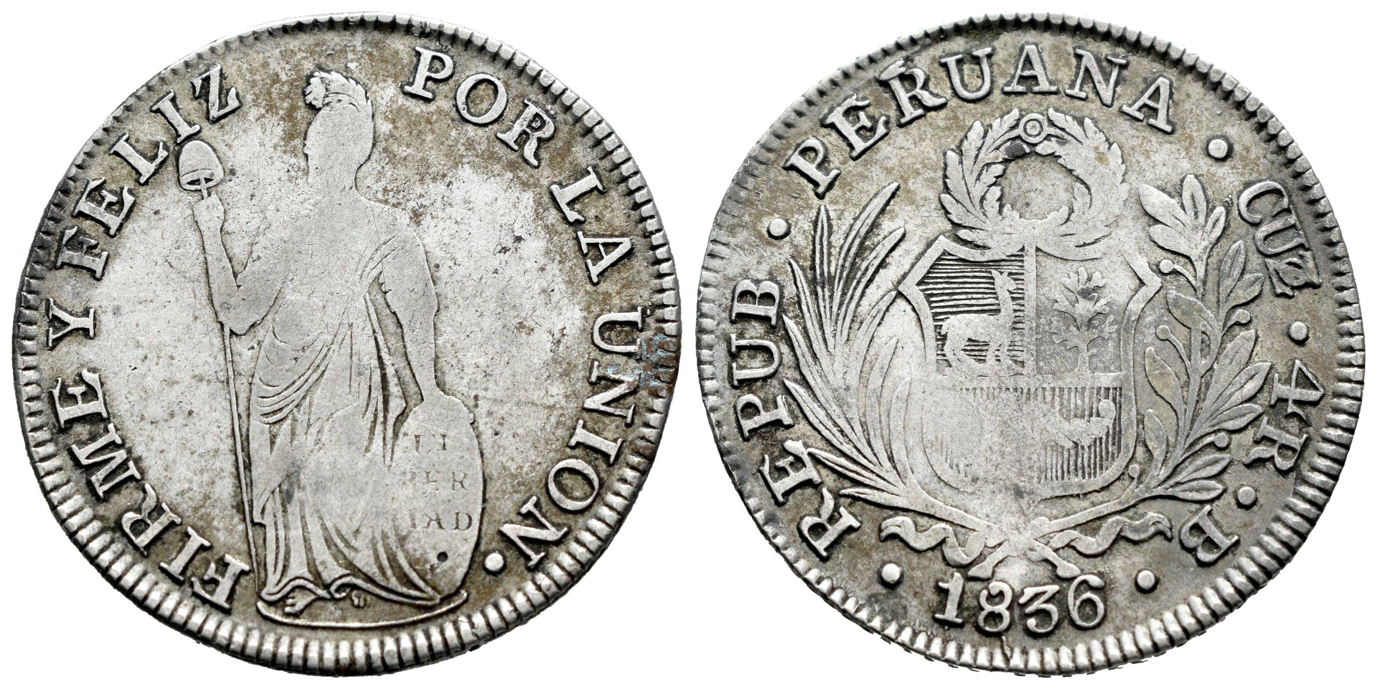 Peru. 4 reales. 1836. Cuzco. B. (Km-151.1). Ag. 13,15 g. Almost VF. Est...60,00.